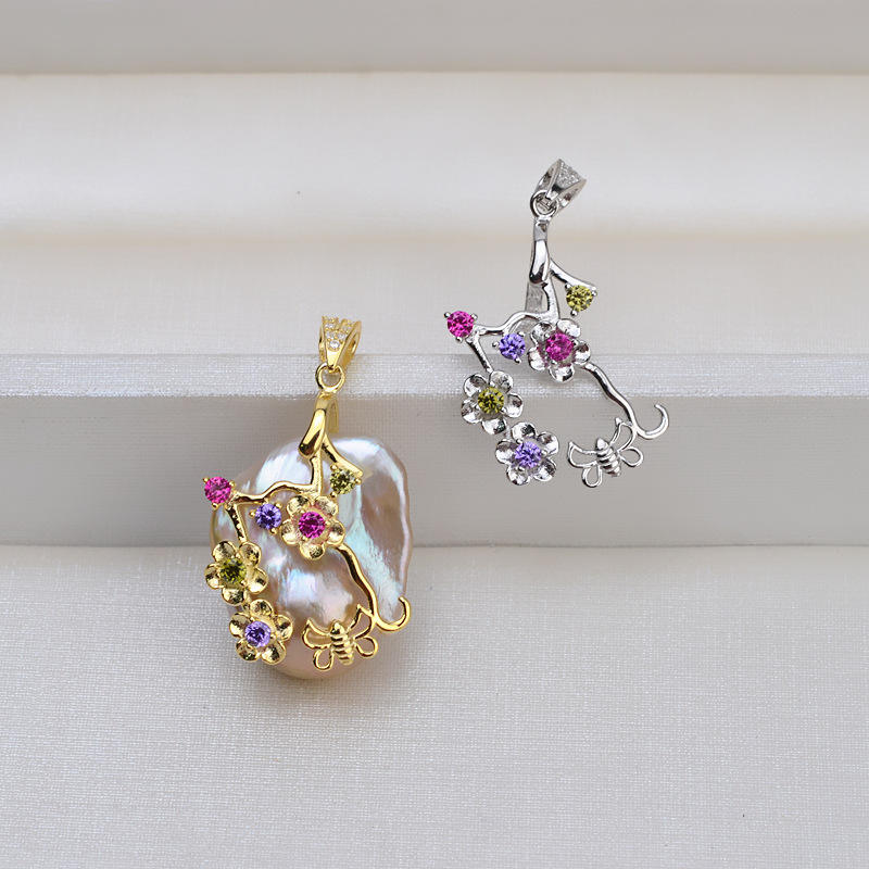 จี้ไข่มุกบาร็อคเงินแท้ 925 ทำมือ สำหรับทำสร้อยคอผู้หญิง รูปทรงพิเศษ ตัวเรือนเปล่า อุปกรณ์และส่วนประกอบสำหรับทำเครื่องประดับ