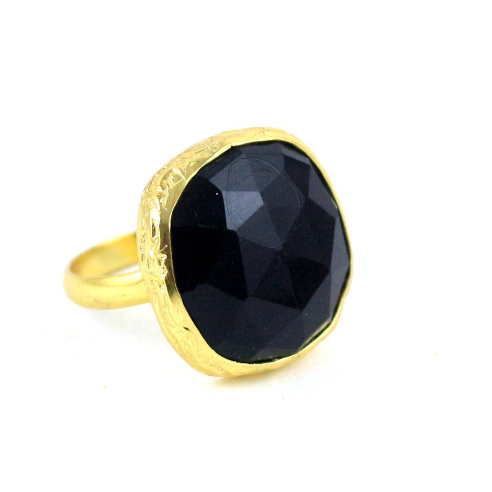 แหวนพลอยเงิน925ทำด้วยมือสีดำธรรมชาติพร้อมชุบโรเดียมเครื่องประดับแฟชั่นสไตล์คลาสสิก