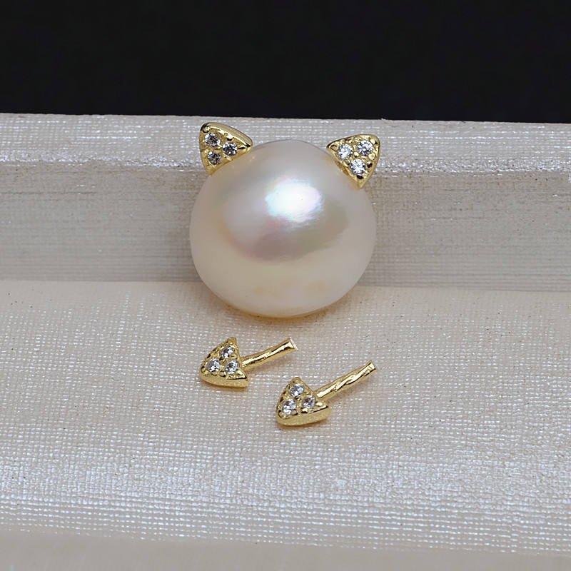 ต่างหูเงินแท้ 925 รูปหูแมวไข่มุกบาโรก งานแฮนด์เมด อุปกรณ์ DIY ชุบทอง รูปขนมปังหูแมว 1 คู่ 4053