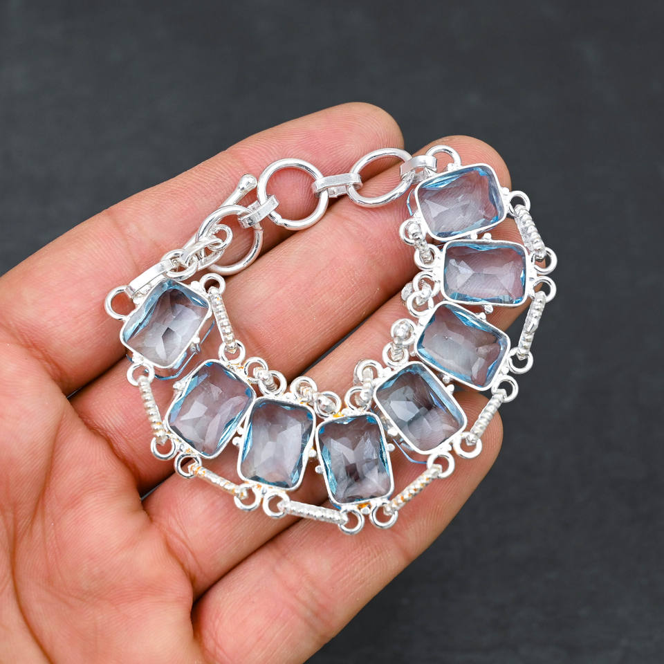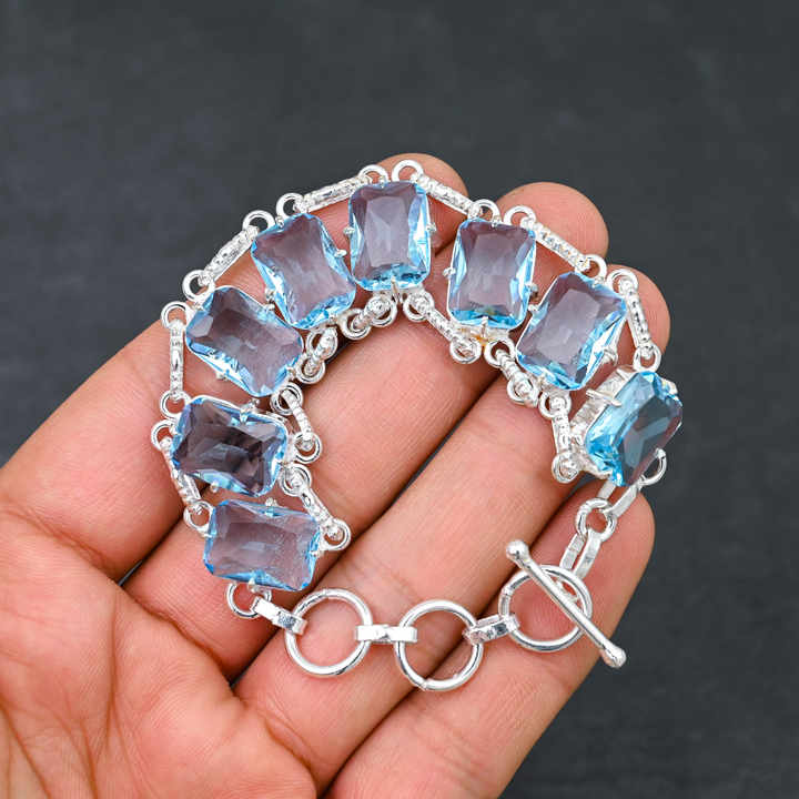 สร้อยข้อมือโซ่ชุบเงินหรูหราได้รับการรับรอง IGI จากห้องปฏิบัติการพลอยบุษราคัมสีฟ้าสำหรับงานแต่งงานของขวัญ