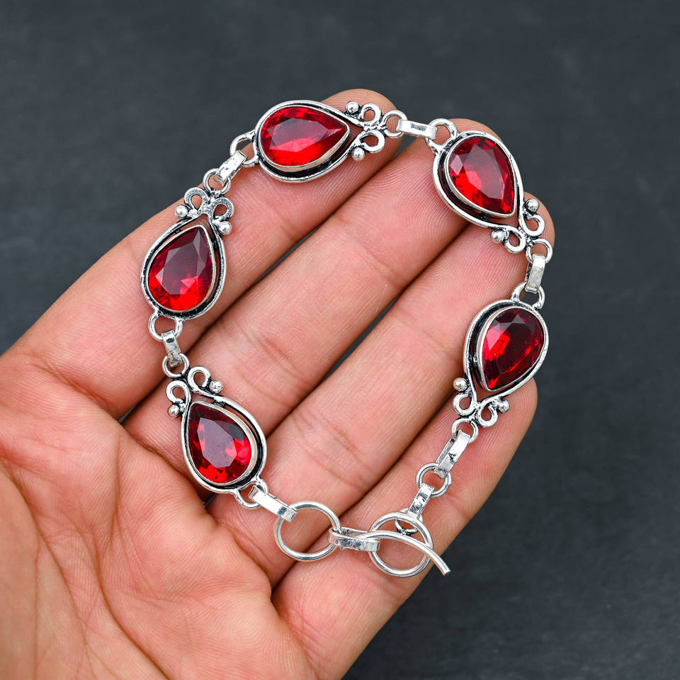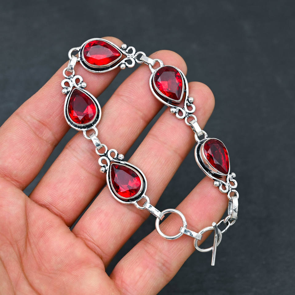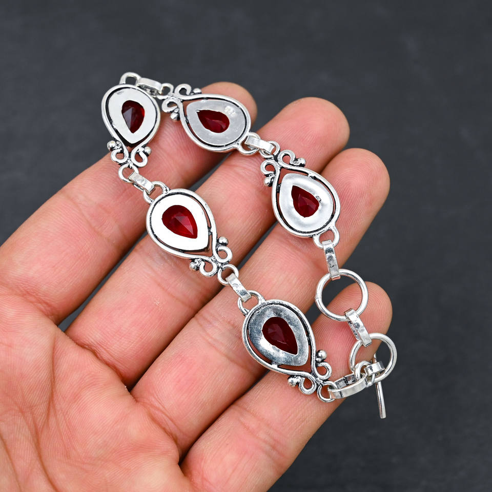 สร้อยข้อมือโซ่ชุบเงิน925ทำด้วยมือพลอยโกเมนสีแดงดีไซน์เนอร์ของขวัญเครื่องประดับชั้นดีจากนักออกแบบในห้องปฏิบัติการ