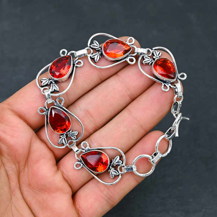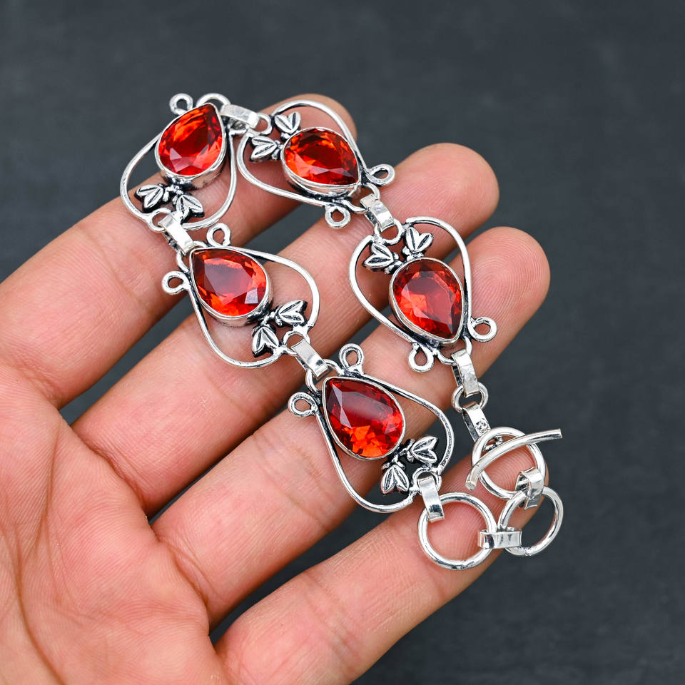 สร้อยข้อมือโซ่ชุบเงิน925ทำด้วยมือพลอยโกเมนสีแดงดีไซน์เนอร์ของขวัญเครื่องประดับชั้นดีจากนักออกแบบในห้องปฏิบัติการ