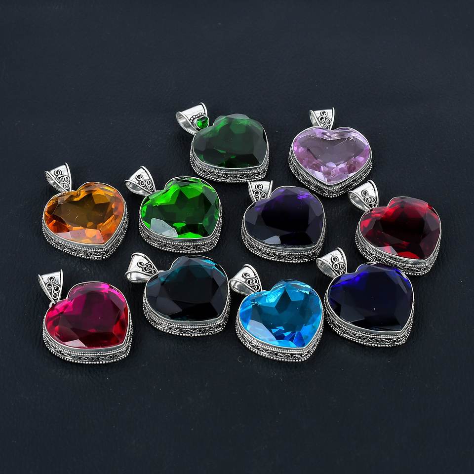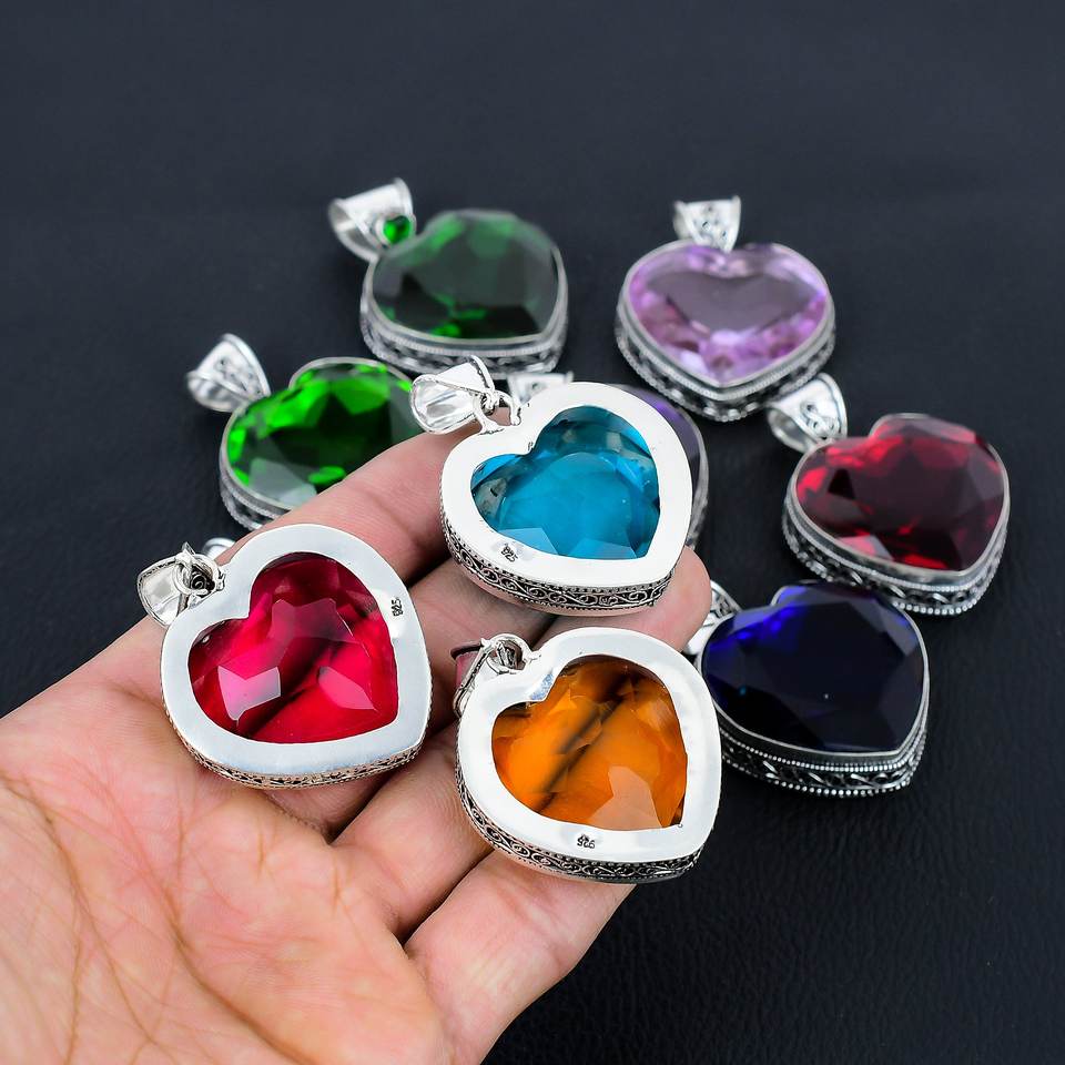 ชื่อหรือคำ:จี้อัญมณีรูปหัวใจ, จี้บุษราคัม, เครื่องประดับสไตล์วินเทจ, จี้เงิน