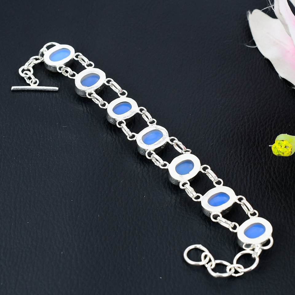 สร้อยข้อมือโซ่อัญมณีโอปอลชุบเงินทำด้วยมือ925ปรับได้สไตล์โบฮีเมียนสำหรับเป็นของขวัญหรือวันเกิด