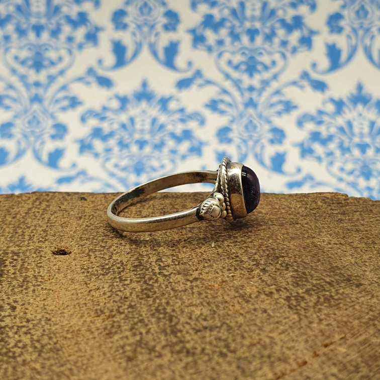 แหวนเงินทำด้วยมือ925ด้วยพลอยอเมทิสต์ช่างฝีมือออกแบบเครื่องประดับเพชรและหินมุก