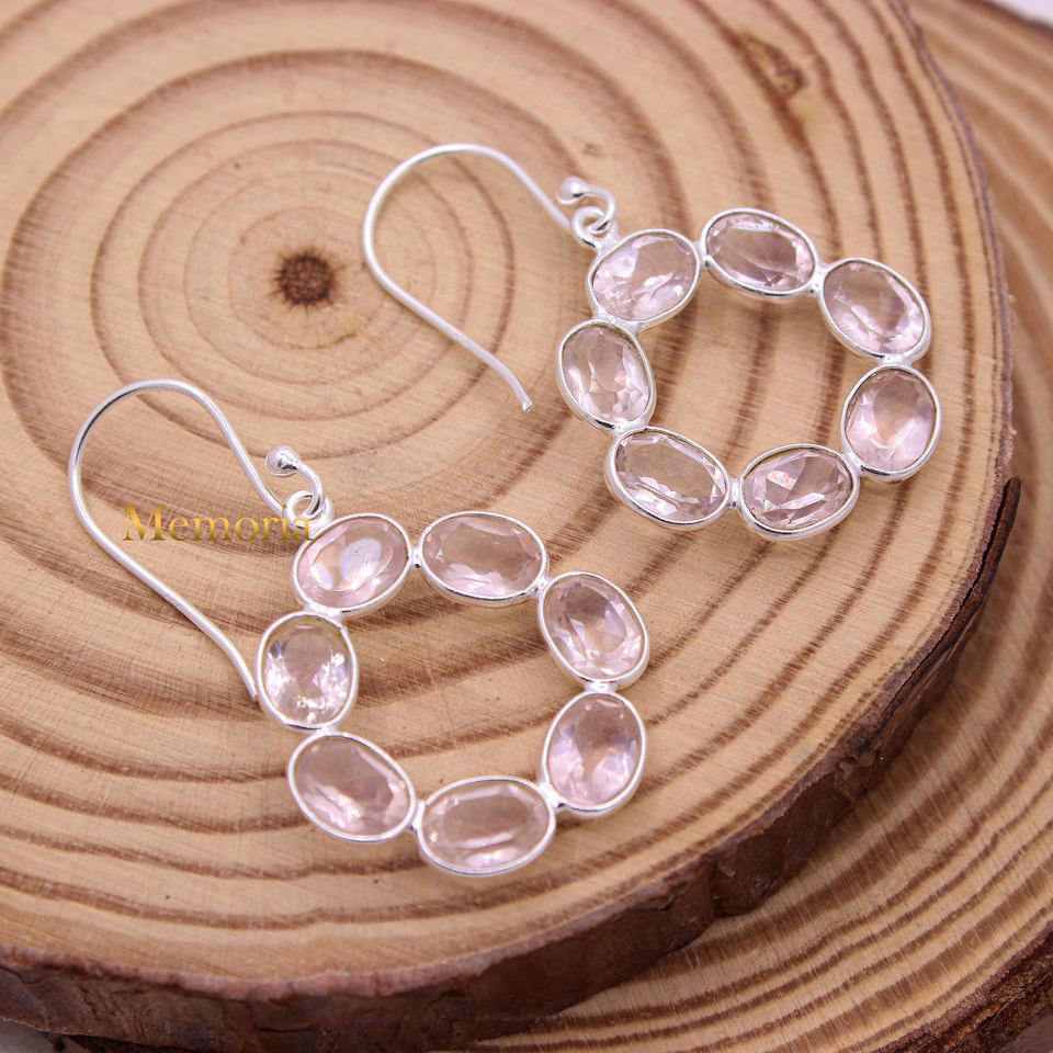 ชื่อผลิตภัณฑ์:ต่างหูเงินควอตซ์สีชมพู