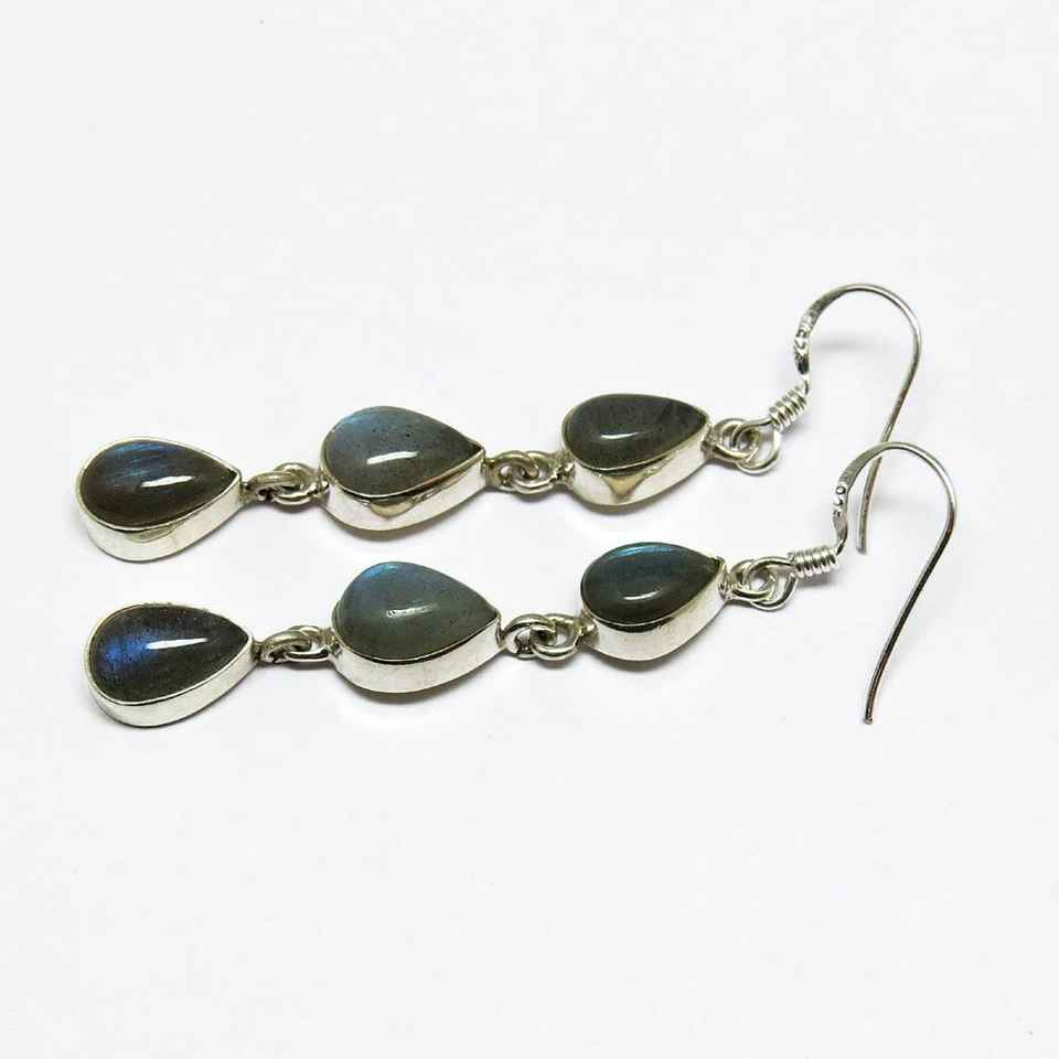 ต่างหูอัญมณีลาบราดอไรต์ธรรมชาติทรงลูกแพร์925แข็งแบบคลาสสิกของขวัญที่ดีทำด้วยมือ