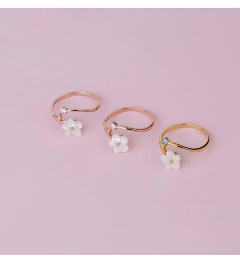 แหวนเงินแท้ 925 ชุบทองคำ 18K ลายดอกซากุระมินิมอลสไตล์คริสเตียน ประดับมุก ปรับขนาดได้ เหมาะสำหรับเป็นของขวัญ