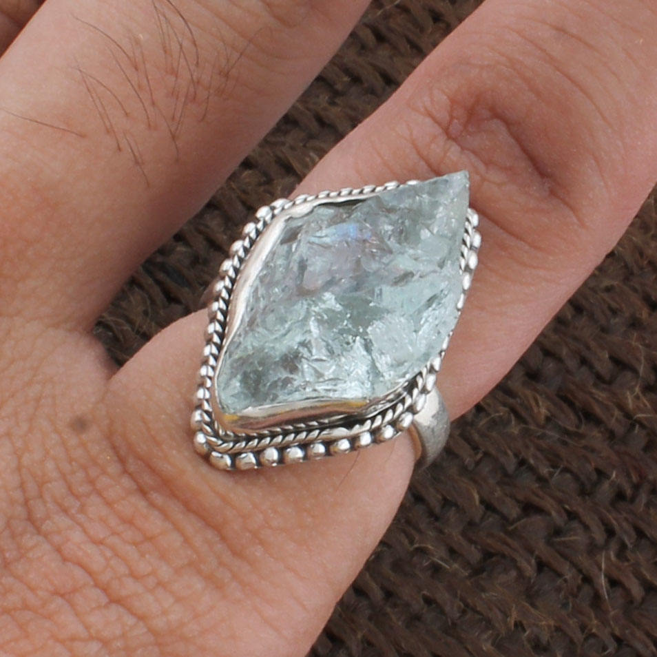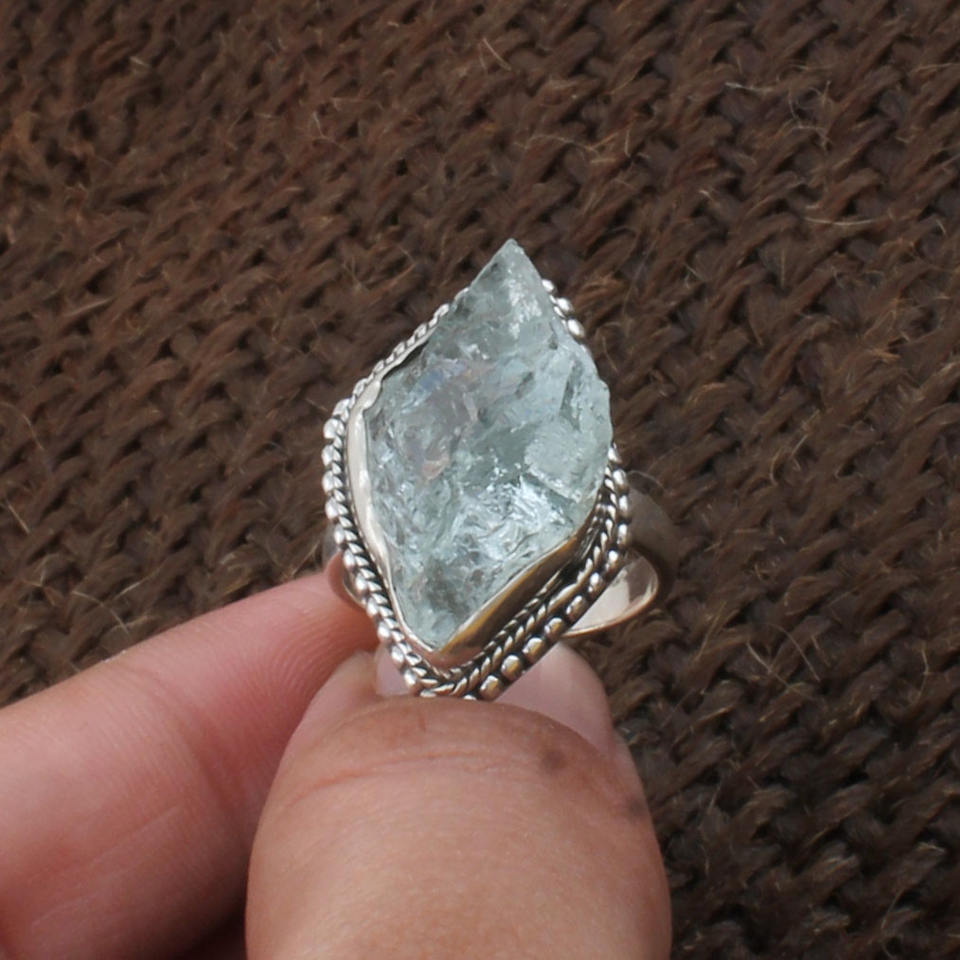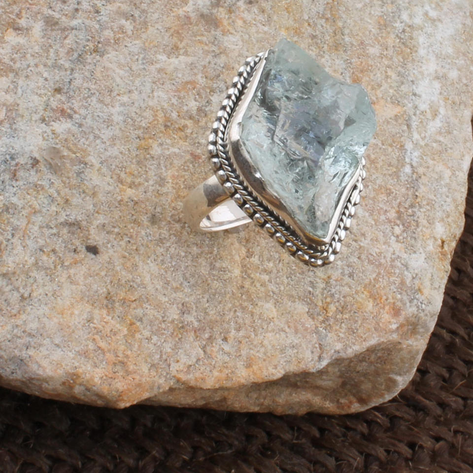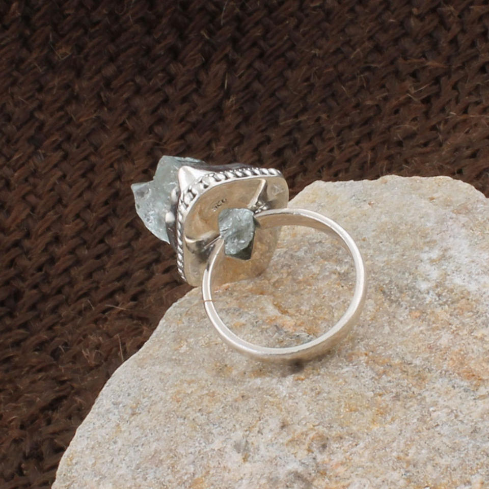 แหวนเงินแท้ 925 ประดับพลอยอะความารีนทรงกลม งานแฮนด์เมด ขอบประดับลายจุด งานฝีมือธรรมชาติ ของขวัญประจำเดือนมีนาคม ขายส่ง