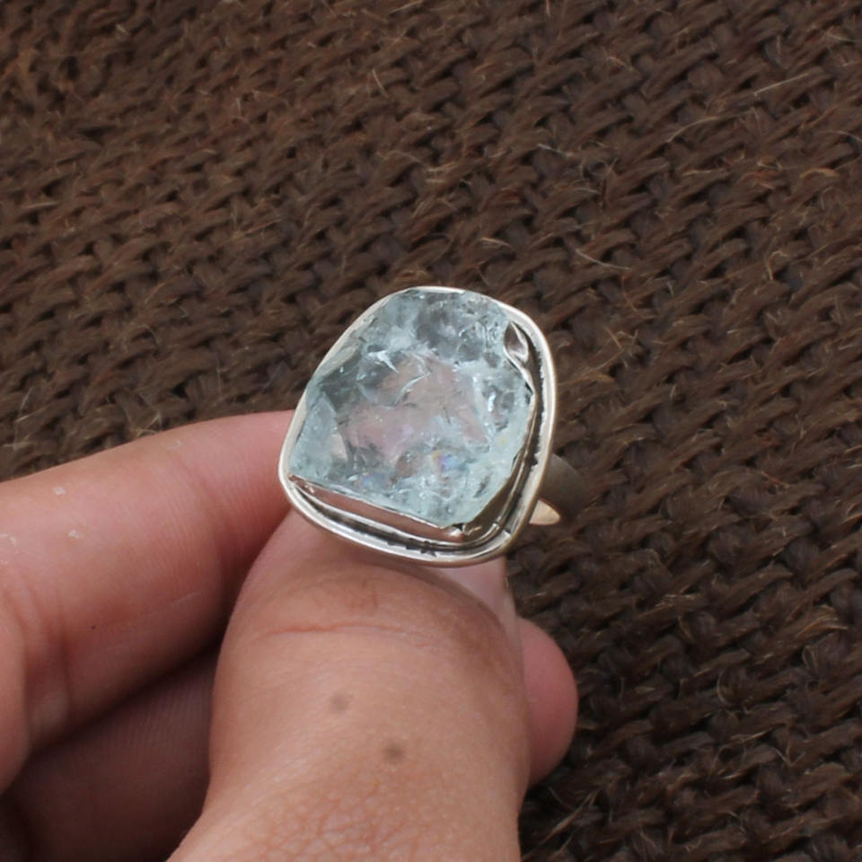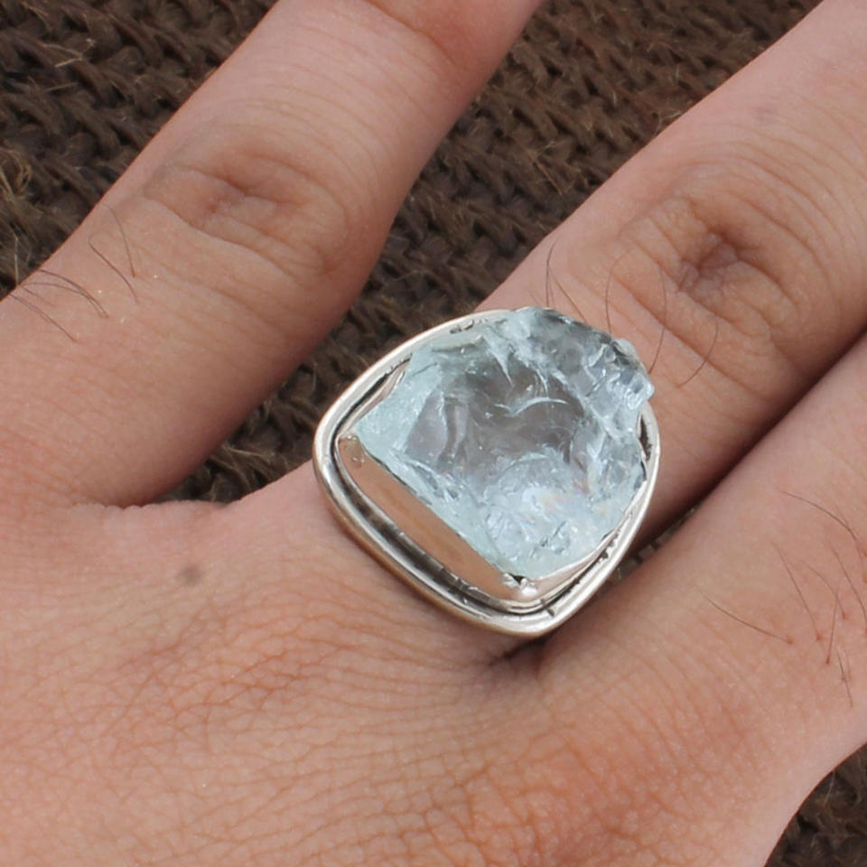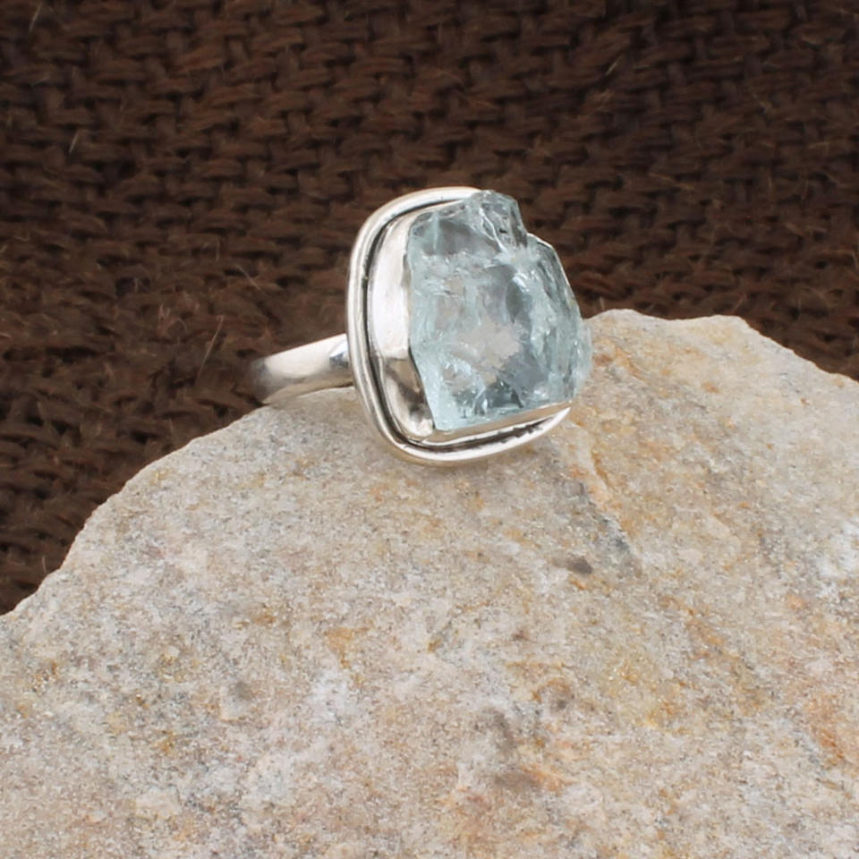 แหวนเงินแท้ 925 ประดับพลอยอะความารีนทรงเบเซล งานแฮนด์เมด ทำมือโดยช่างฝีมือ เหมาะสำหรับงานแต่งงาน หรือเป็นเครื่องประดับประจำเดือนมีนาคม
