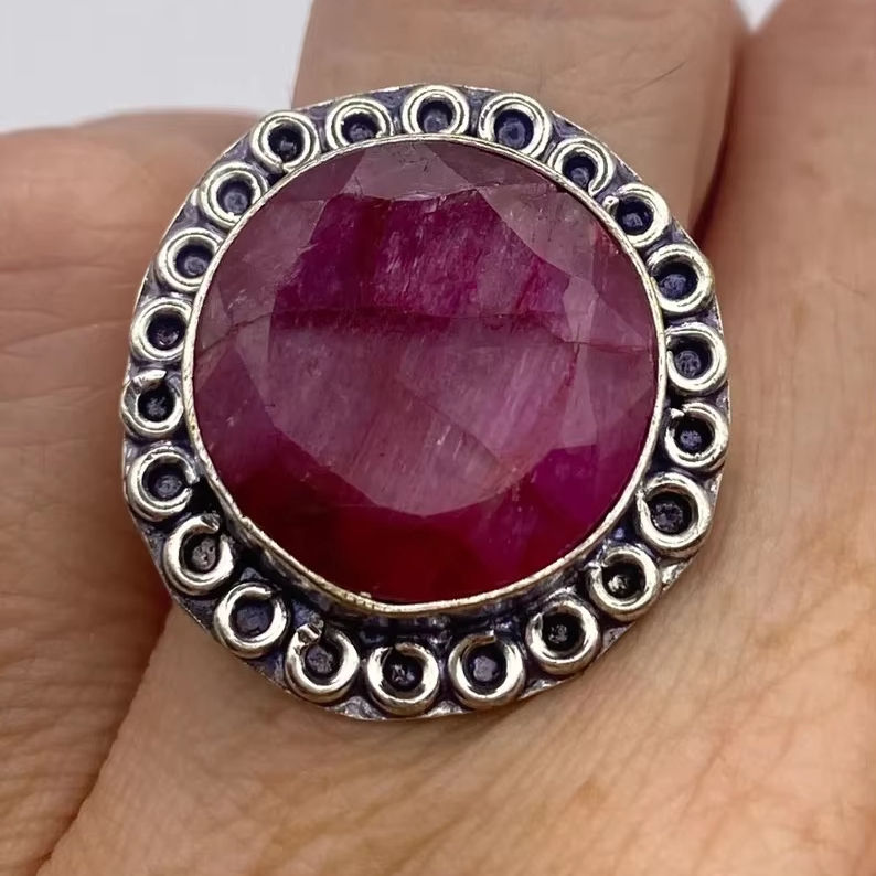 แหวนเงินแท้ 925 ประดับพลอยลาริมาร์และทับทิมทรงคลาสสิก ดีไซน์เนอร์ งานแฮนด์เมด เหมาะสำหรับเป็นของขวัญวันแต่งงาน/วันเกิด/วันครบรอบ