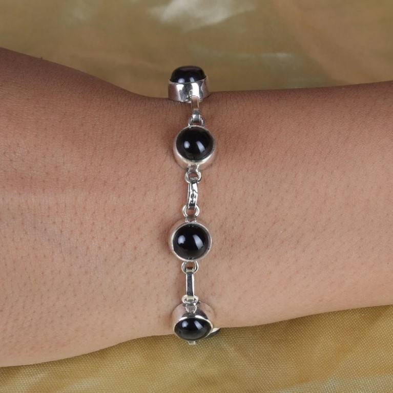 ชื่อผลิตภัณฑ์:สร้อยข้อมือเงินพลอยสีดำธรรมชาติ