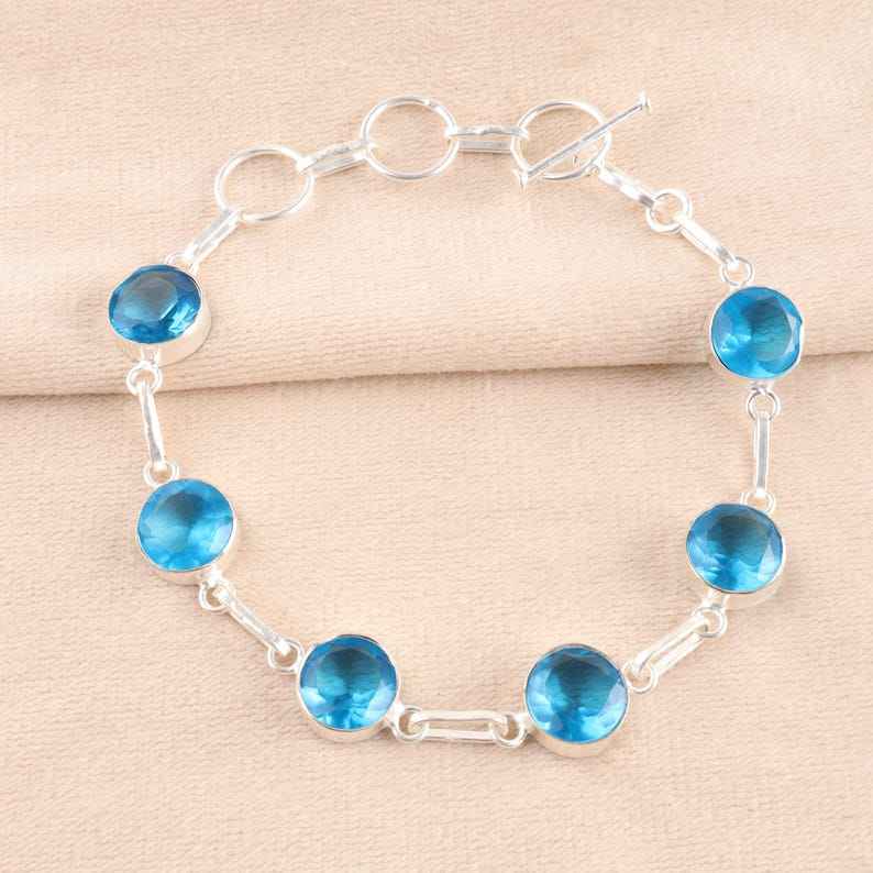 สร้อยข้อมือเงินสเตอร์ลิง925แฮนด์เมดสำหรับผู้หญิงสำหรับสวิสบลูโทแพซชุดฝาตัดอัญมณีสำหรับงานแต่งงาน