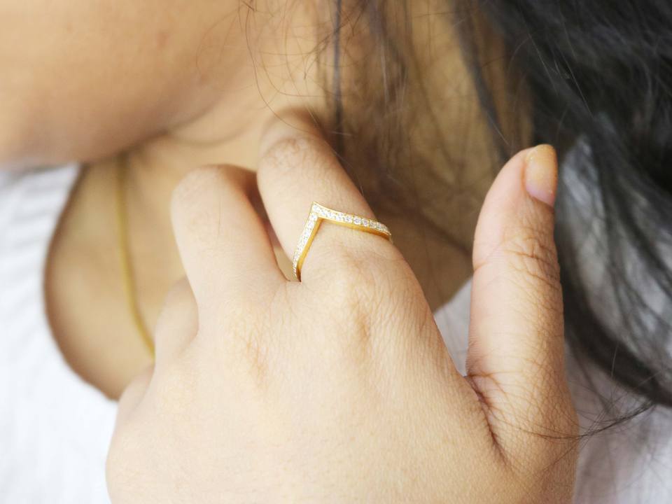 แหวนเชฟรอนเงินสเตอร์ลิงทำด้วยมือ925เครื่องประดับแหวนอินเดียเซอร์โคเนียสัญญา