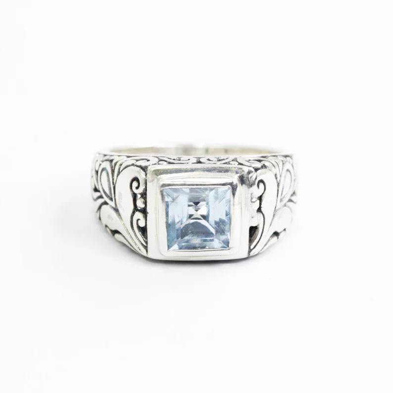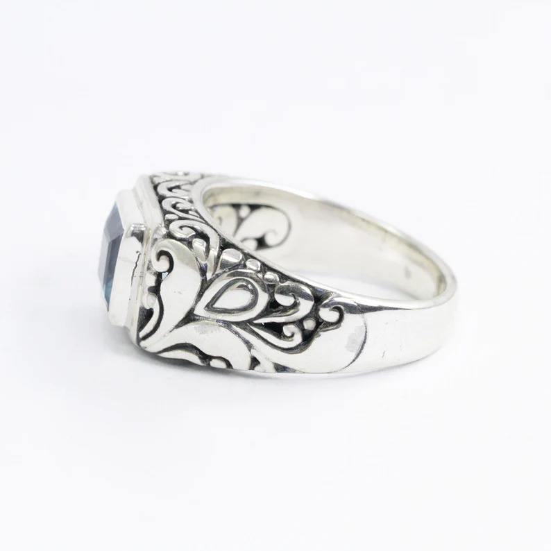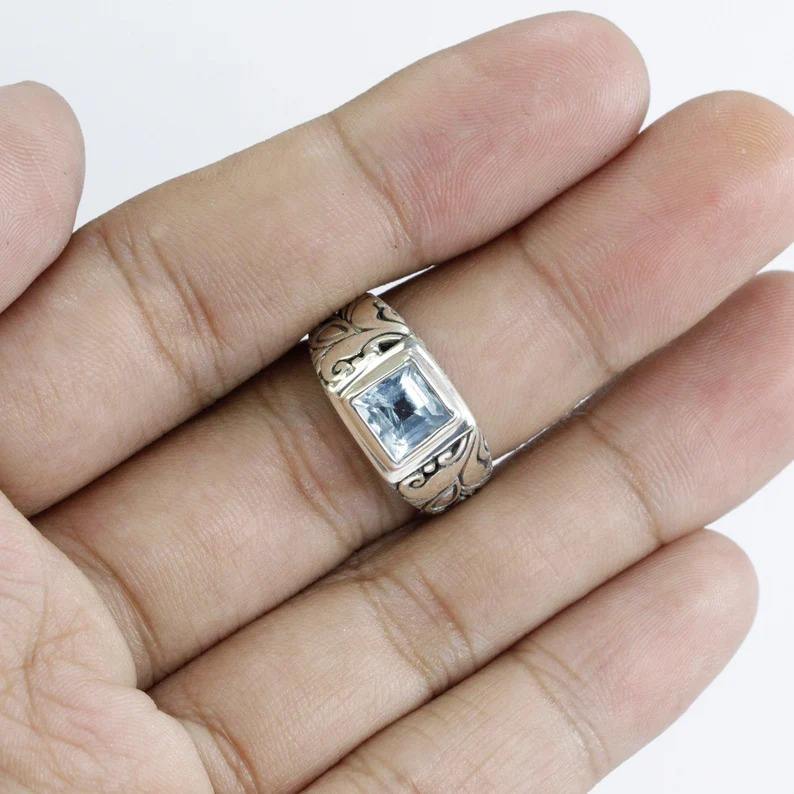 แหวนเงินแท้ 925 ประดับพลอยบลูโทแพซสีน้ำเงินคลาสสิก งานแฮนด์เมด เหมาะสำหรับงานปาร์ตี้และงานแต่งงาน หินธรรมชาติ ได้รับการรับรองจากผู้ที่สาม ผลิตในตุรกี