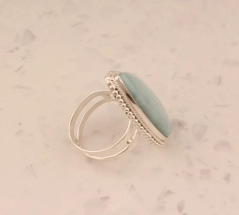 แหวนพลอยลาริมาร์ตัดรูปลูกแพร์คลาสสิกแบบ925เงินสเตอร์ลิงทำด้วยมือตั้งได้อเนกประสงค์สำหรับงานแต่งงานของขวัญวันเกิด