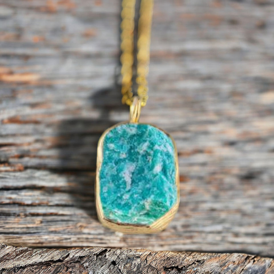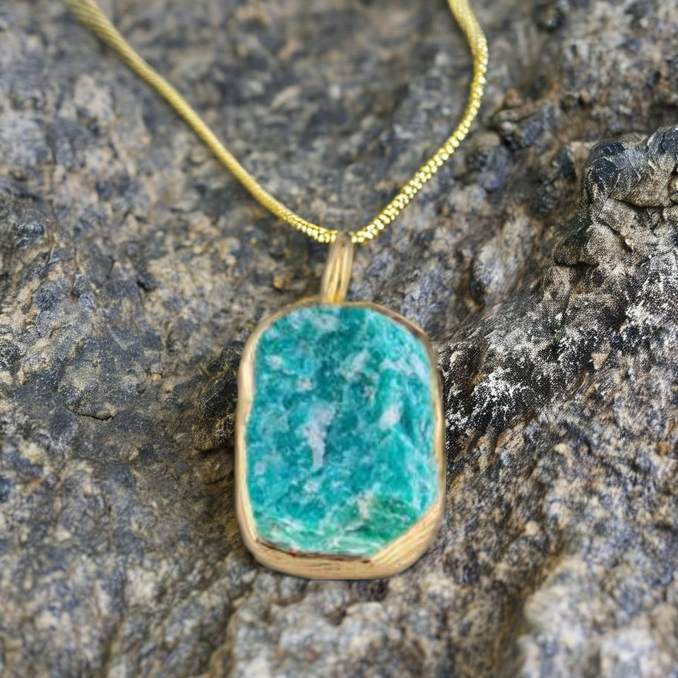 ชุด925คอลเลตต์เงินสเตอร์ลิงทำด้วยมือคริสตัลอเมซอนไนต์บำบัดสีทอง Vermeil จี้แฟชั่นเครื่องประดับขายส่ง