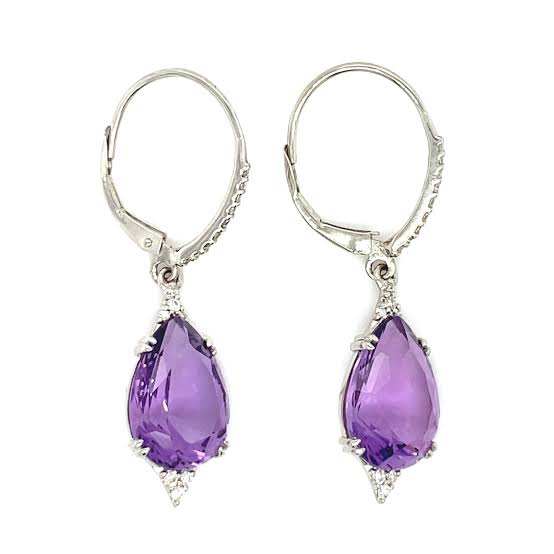 ต่างหูเงินแท้ 925 ทำมือ ประดับพลอยอะมีทิสต์ธรรมชาติ รูปทรงลูกแพร์ ขนาด 12-15 มม. ราคาขายส่ง