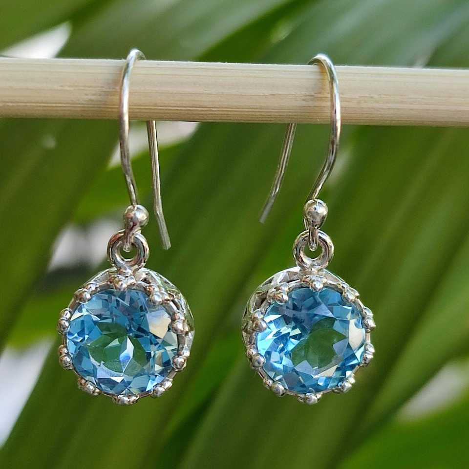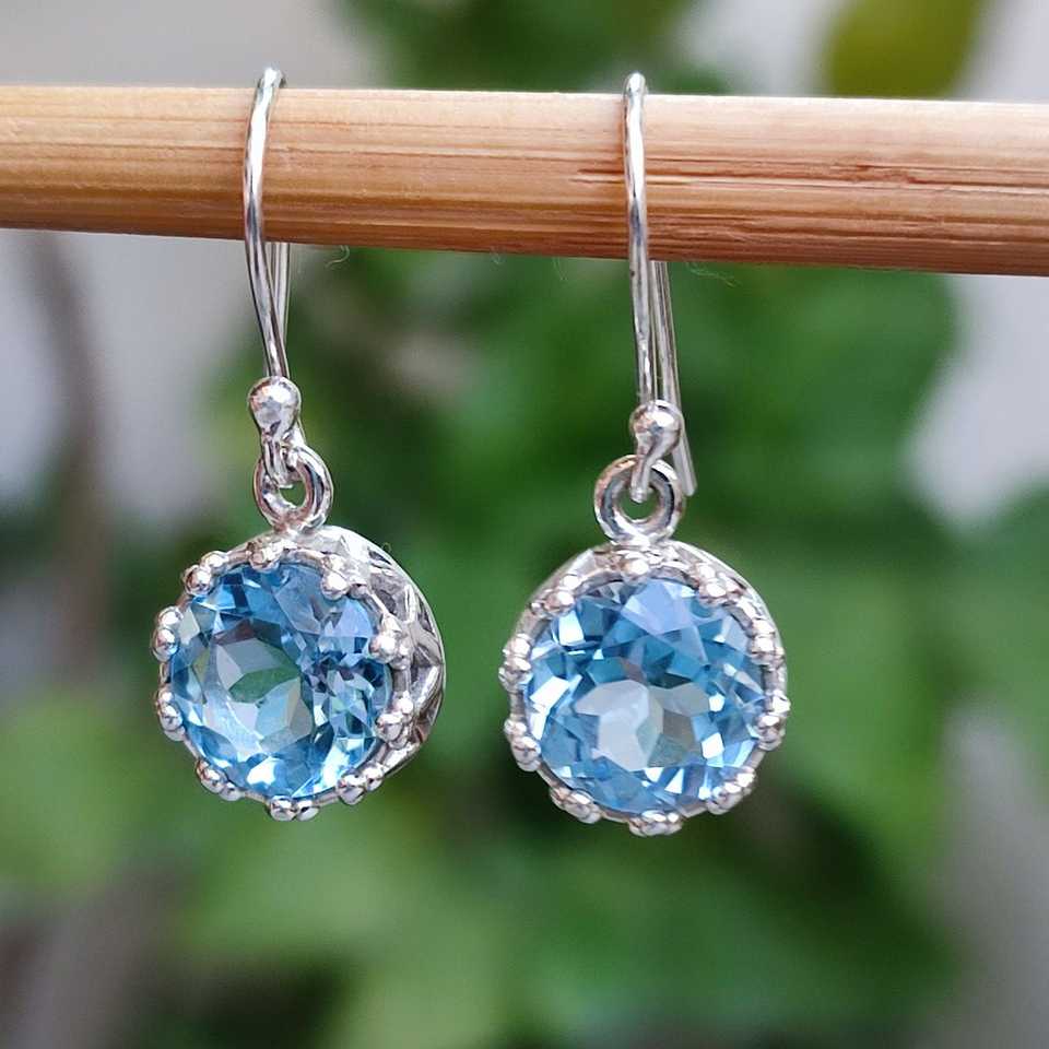 ต่างหูเงินแท้ 925 ทำมือ ประดับพลอยบลูโทแพซธรรมชาติ ของขวัญประจำเดือนธันวาคม ตกแต่งด้วยมรกต