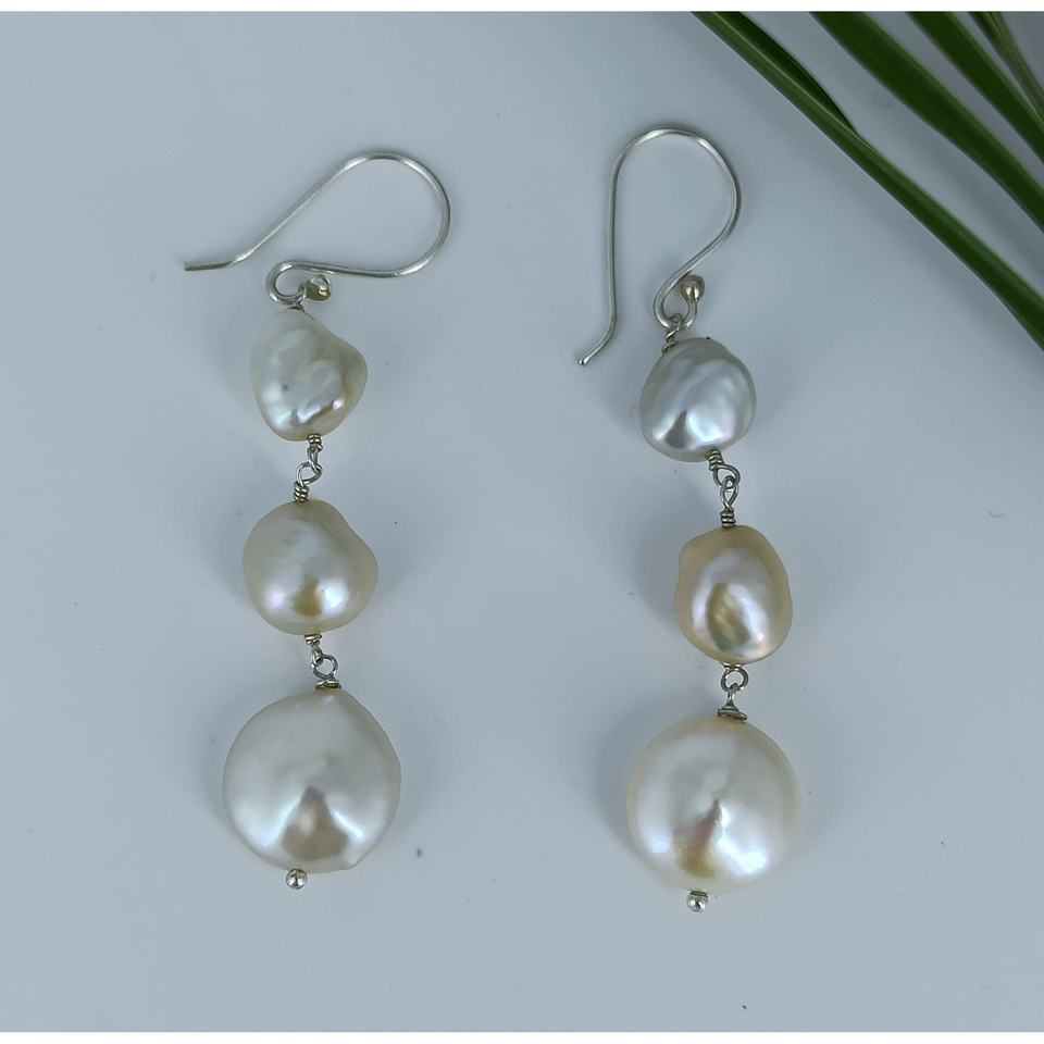 ต่างหูเงินแท้ 925 ทำมือ ประดับมุกน้ำจืดและเปลือกหอย สไตล์โบโฮ สำหรับผู้หญิง - ของขวัญสำหรับเธอ