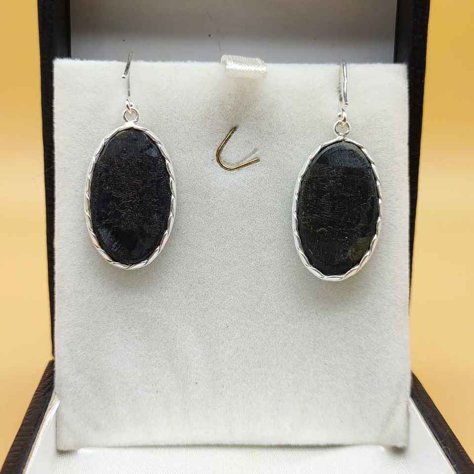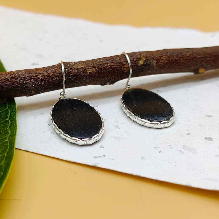 ต่างหู925เงินสเตอร์ลิงรูปวงรีสีดำพลอยสไตล์โบฮีเมียนทำจากงานแฮนด์เมดจัดส่งฟรี
