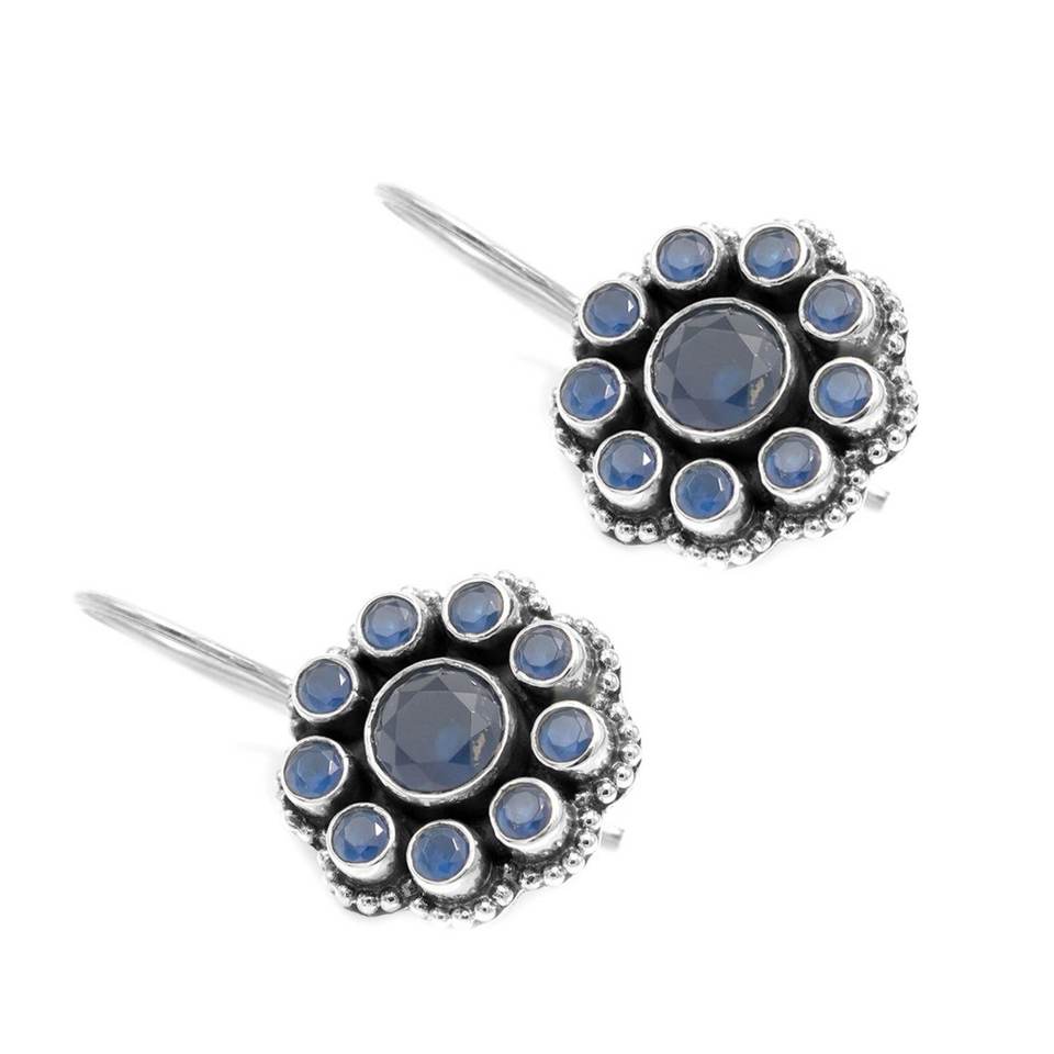 ต่างหู925เงินสเตอร์ลิงทำด้วยมือกระดุมพลอยแซฟไฟร์พลอยสีฟ้าธรรมชาติของขวัญสุดหรูสำหรับเธอ