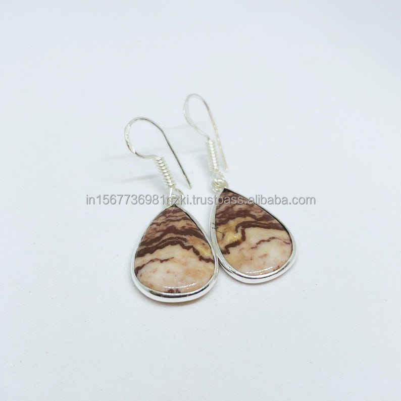 ทำด้วยมือ925เงินสเตอร์ลิงต่างหูหรูหราอัญมณีมะพร้าวแจสเปอร์เครื่องประดับอินเทรนด์สำหรับเป็นของขวัญวันวาเลนไทน์