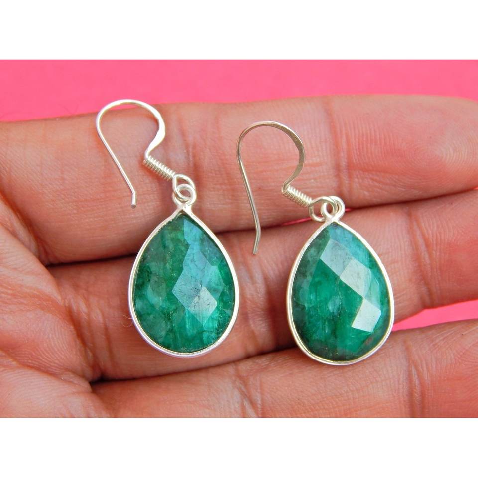 ต่างหูมรกตเงินสเตอริง925ทำด้วยมืออัญมณีเพชรที่ถูกสร้างขึ้นจากห้องปฏิบัติการเครื่องประดับ Item-E0112-GS ของขวัญของผู้หญิง