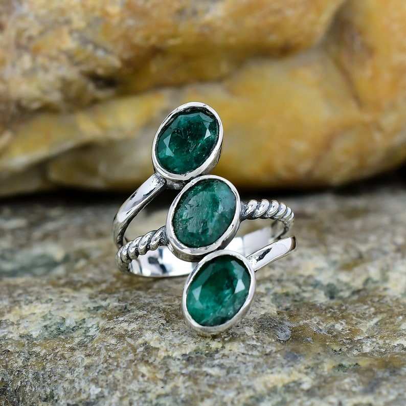 แหวนเวอร์เมิลเงินสเตอร์ลิงทำด้วยมือ925ดีไซน์คลาสสิกไม่เหมือนใครพร้อมตัวเรือนพลอยมรกตธรรมชาติ