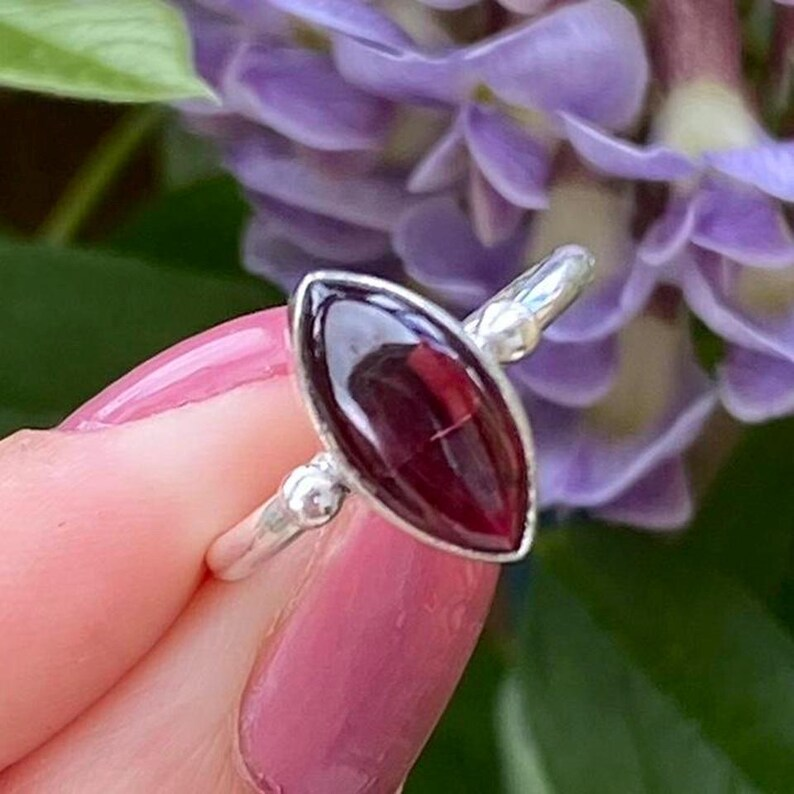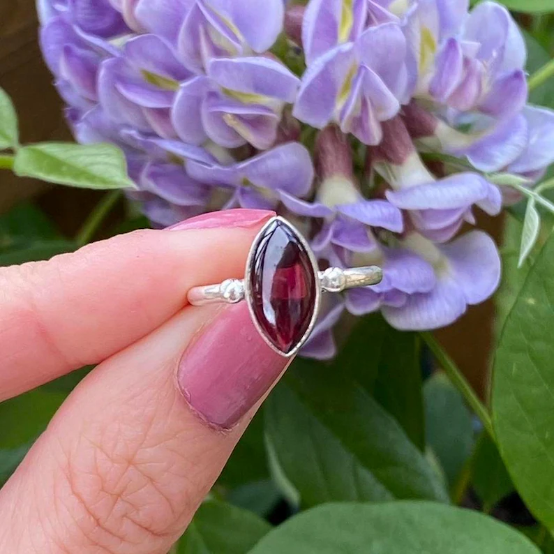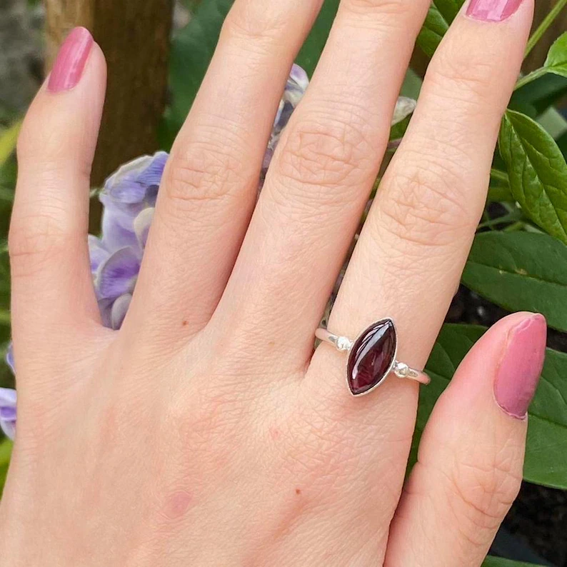 แหวนเงินแท้ 925 ประดับพลอยโกเมนทรงมาร์ควิส สำหรับเดือนมกราคม งานแฮนด์เมด ราคาโรงงาน