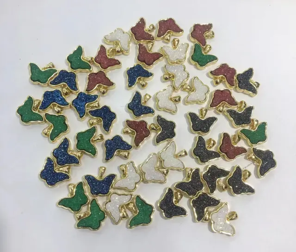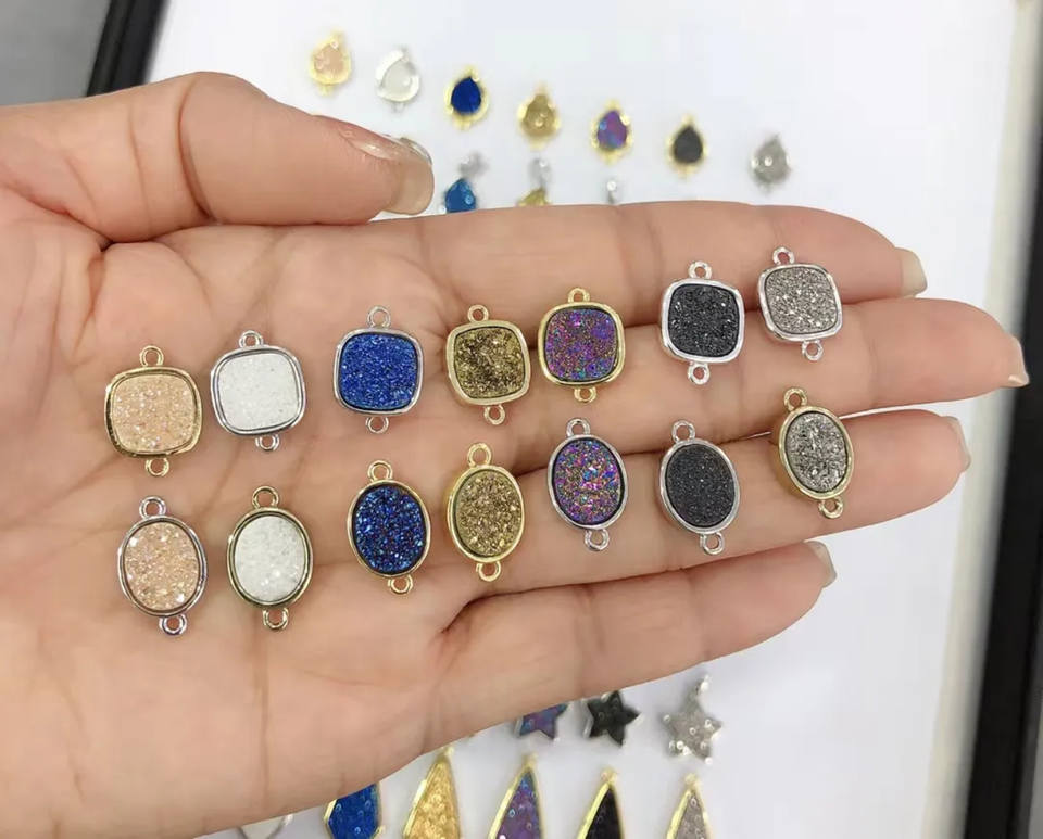 ทำด้วยมือ925เงินสเตอร์ลิงชุบทองวินเทจโซ่จี้อัญมณีดรูซี่ผสมขนาด10To15MM ขอบชุดเครื่องประดับรูปดาว