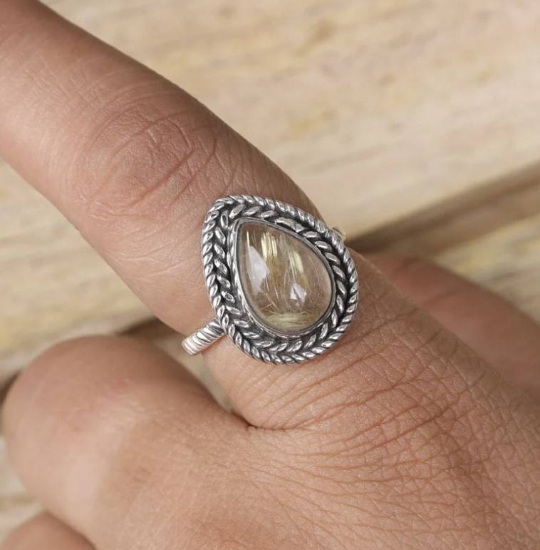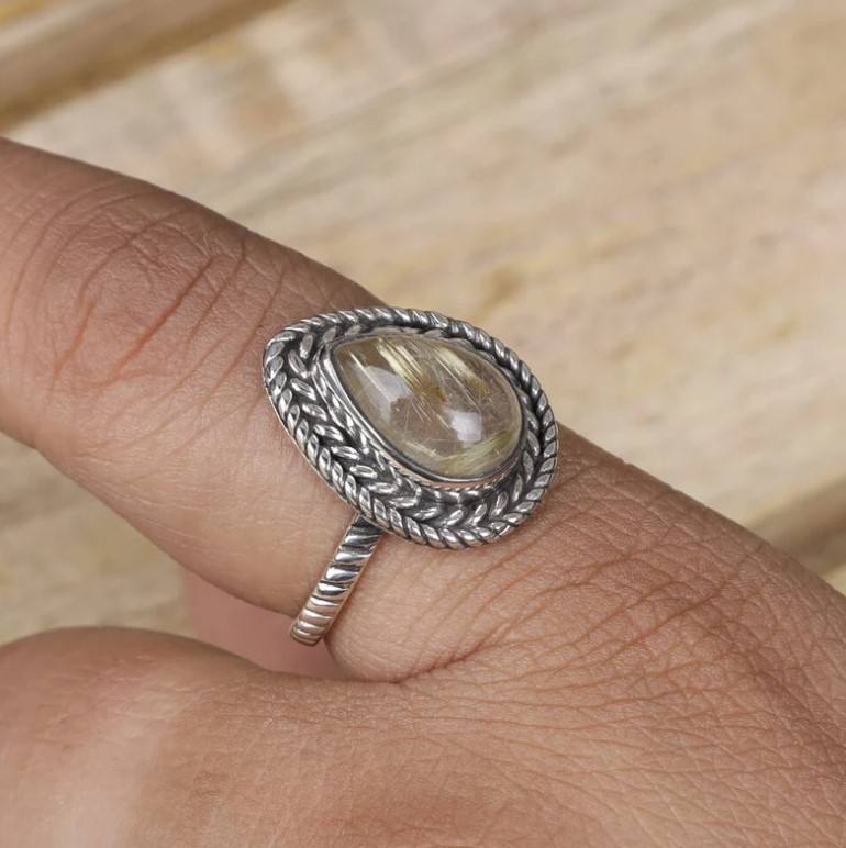 Golden Rutile Silver Ring