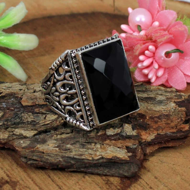 แหวนเงินแท้สำหรับผู้ชายทำด้วยมือ925อัญมณีสีดำขนาด21X14มม. พร้อมตัวเรือน