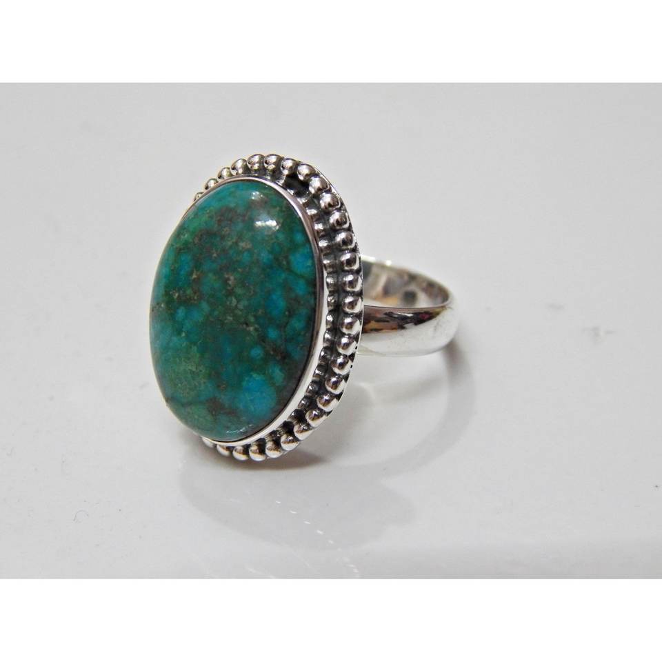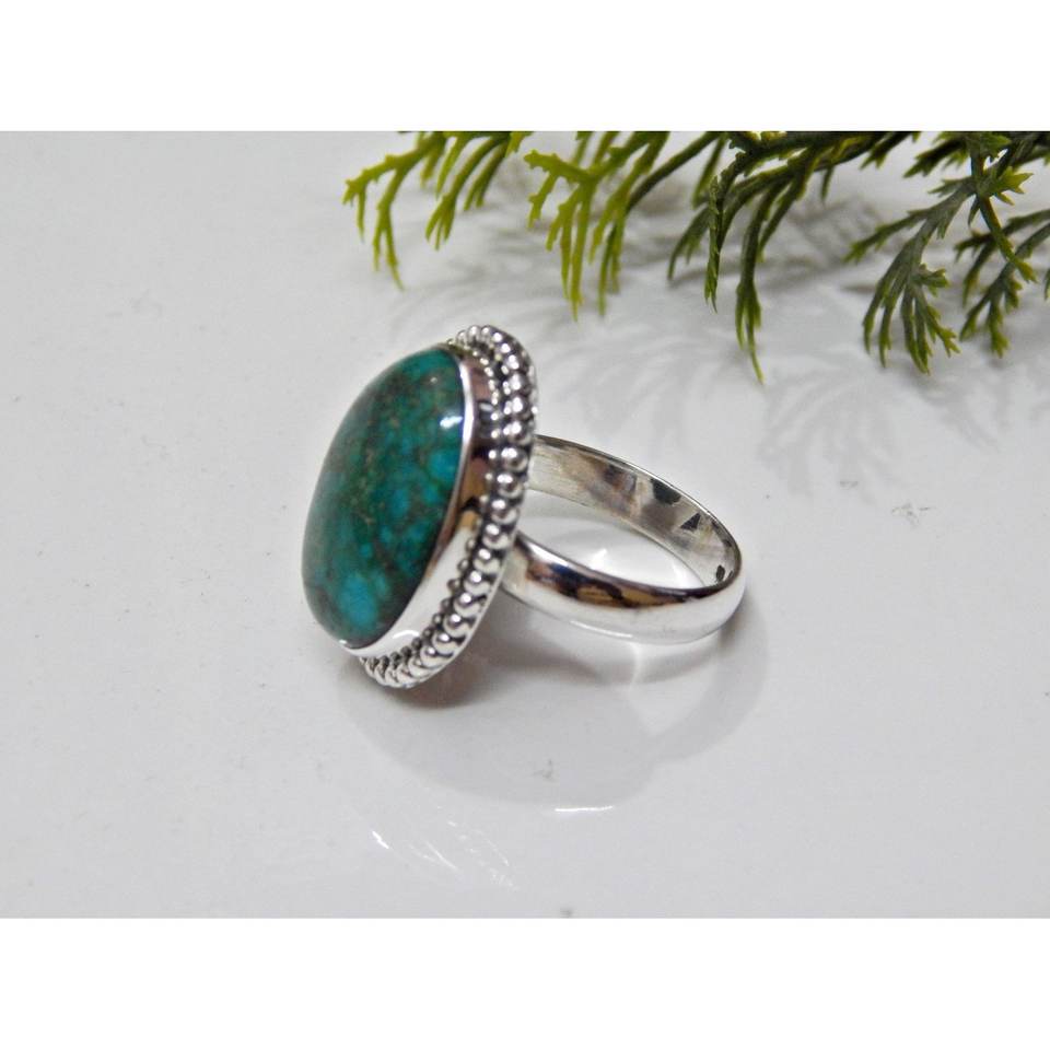 แหวนพลอยเทอร์ควอยซ์ธรรมชาติทำด้วยมือเงินแท้925ชิ้น-ของขวัญครบรอบหรูหราสำหรับ R0078-GS ของเธอ