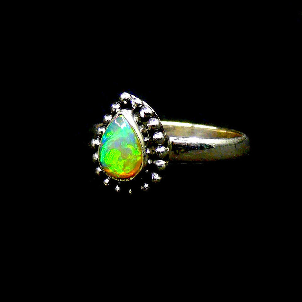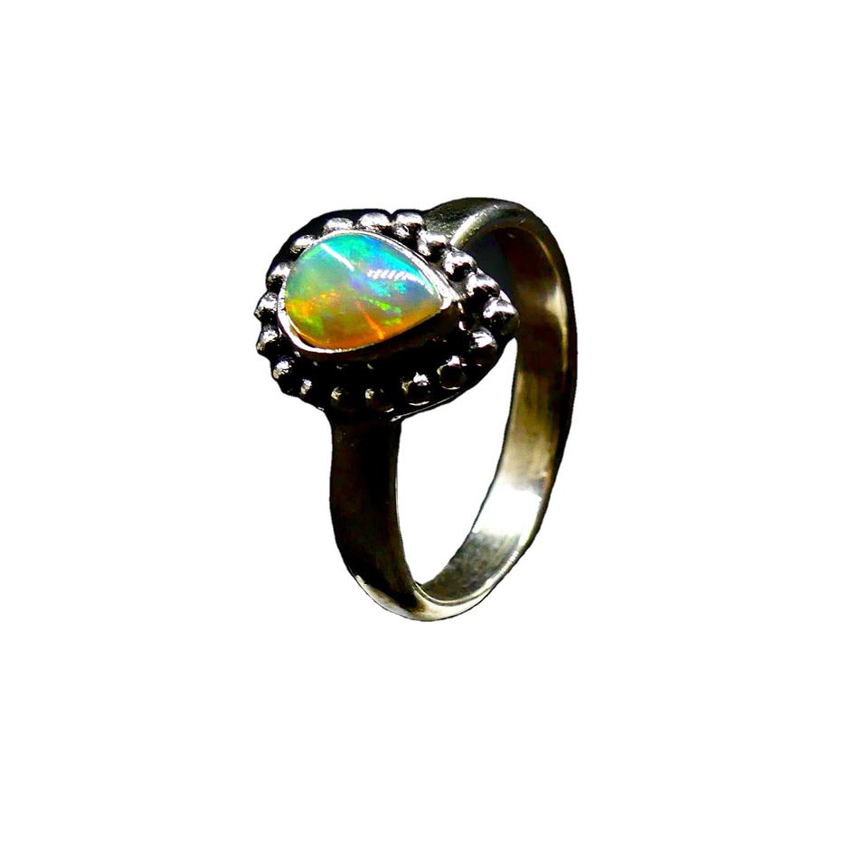 แหวนอัญมณีโอปอลสีเงินสเตอร์ลิงทำด้วยมือ925แฟชั่นอินเทรนด์ใส่ประจำวันแหวนรูปหยดน้ำ
