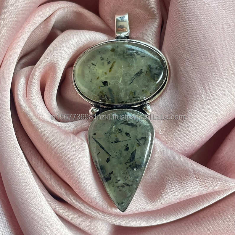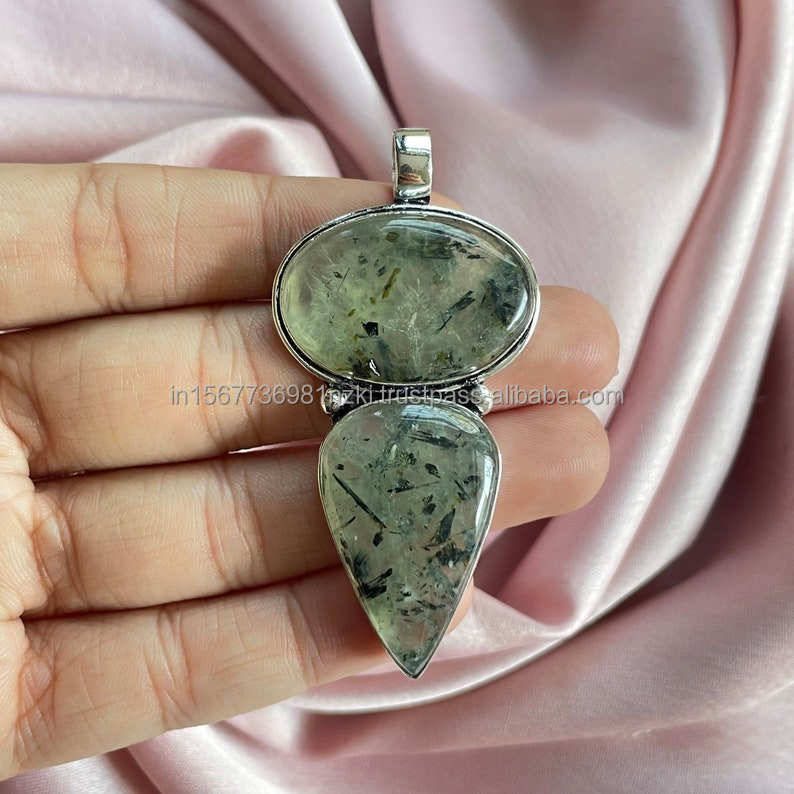 ทำด้วยมือ925เงินจี้จี้หินอัญมณีพรีไนต์เครื่องประดับทำด้วยมือเงินเครื่องประดับของขวัญเครื่องประดับ prehnite สำหรับเธอ