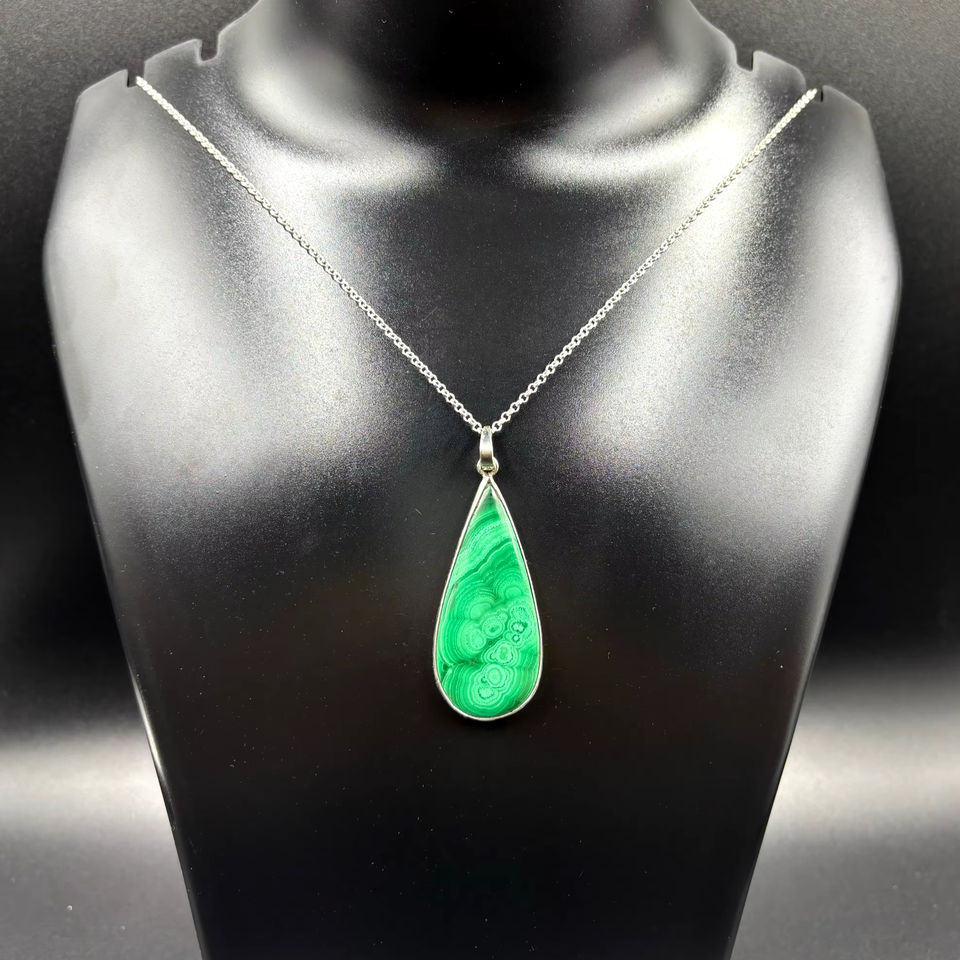 Handmade 925 Sterling Silver Pendant for Unisex Gold Plated Malachite Gemstone Vintage Style Nickel-Free Lead-Free Bezel Set