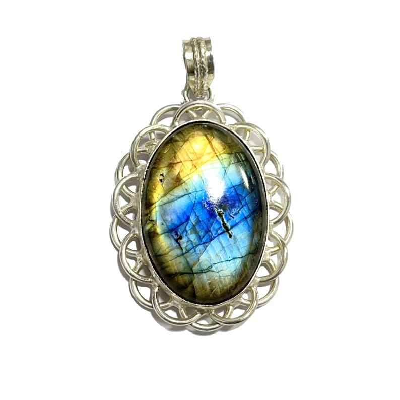 ทำด้วยมือ925จี้เงินสเตอร์ลิงพร้อมอัญมณีลาบราดอไรต์ธรรมชาติหลายแบบวินเทจชุบทองสมบูรณ์แบบของขวัญวันเกิดสำหรับผู้หญิง