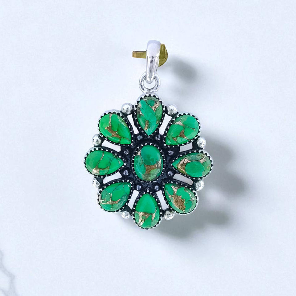 จี้เงินแท้ 925 ทำมือ ประดับด้วยพลอยเทอร์ควอยซ์สีเขียวทองแดง เครื่องประดับคุณภาพดี ราคาขายส่ง รวมจี้ชาร์ม