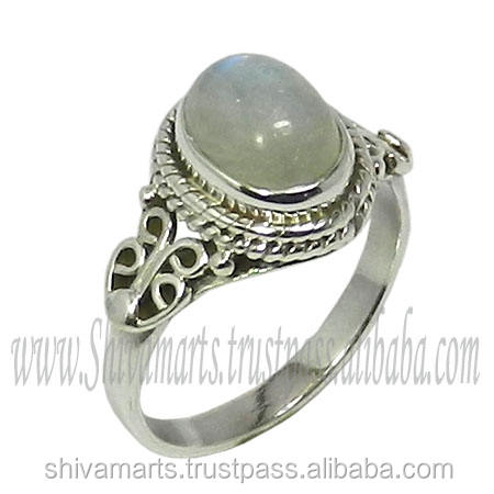 ทำด้วยมือ925เงินสเตอร์ลิงสีรุ้งแหวนพลอยมูนสโตนเครื่องประดับแฟชั่นสวยแหวนเงินแท้