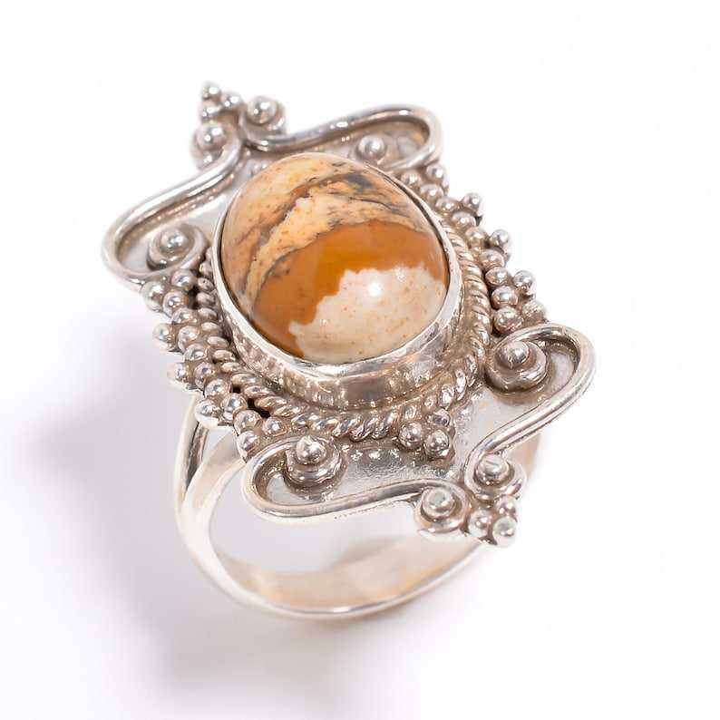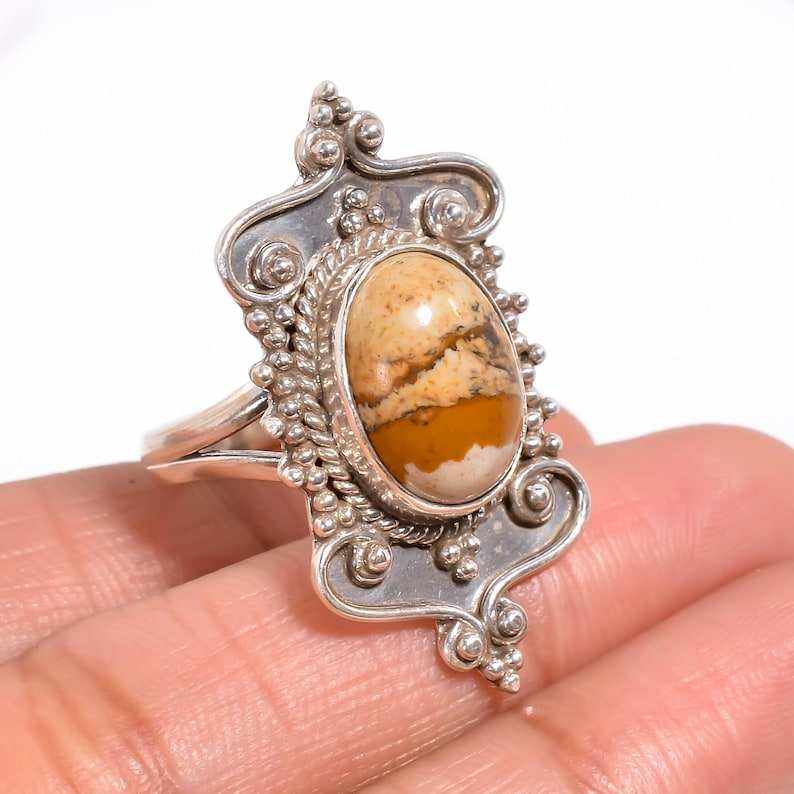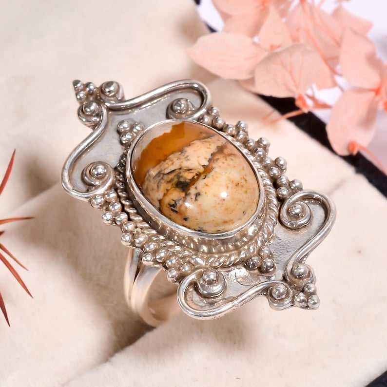แหวนเงินแท้รูปวงรีแจสเปอร์925ทำด้วยมือปะการังรักษาด้วยความร้อนธรรมชาติของขวัญครบรอบเครื่องประดับสำหรับผู้หญิง