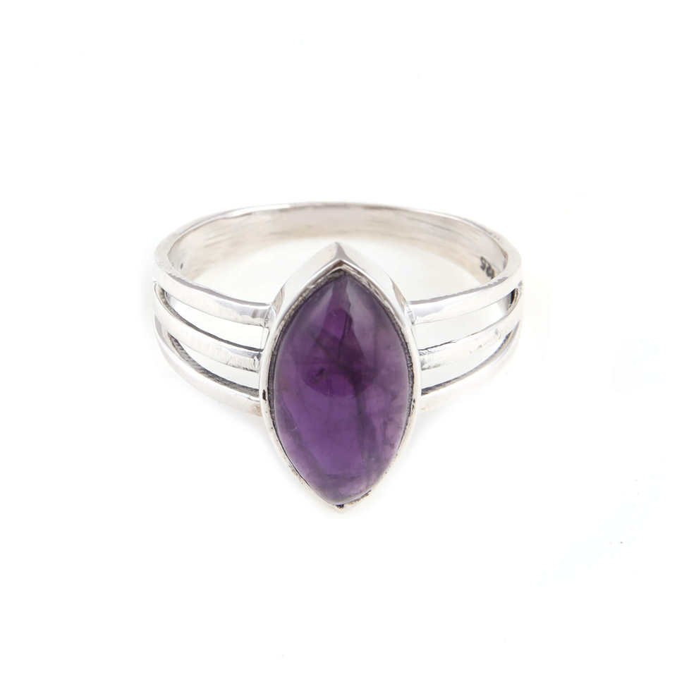 ทำด้วยมือ925แหวนเงินสเตอร์ลิงสีม่วงสวยงามพลอยอเมทิสต์เพชรสแตนเลสสำหรับงานปาร์ตี้ขายส่งเครื่องประดับ