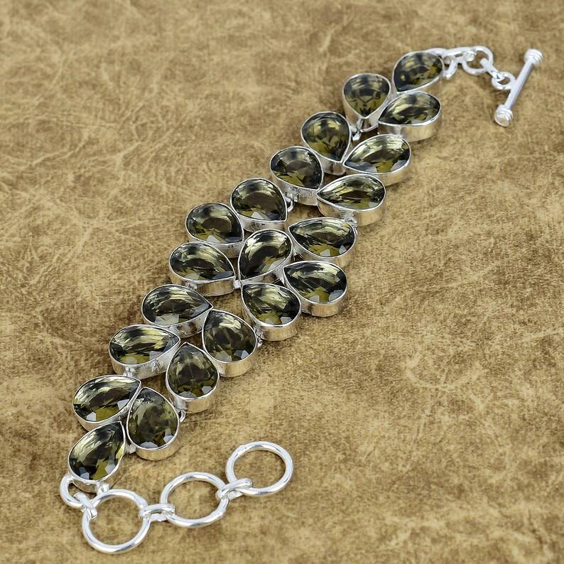 กำไลข้อมือเงินแท้ 925 ประดับด้วยควอตซ์สโมกี้สีน้ำตาลทรงลูกแพร์ ปรับขนาดได้ ของขวัญเครื่องประดับ