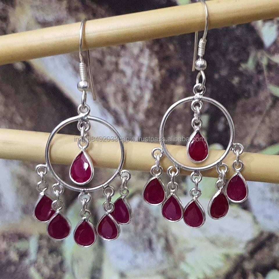 Ruby Corundum 925 Sterling Silver Dangle Earrings