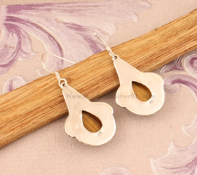 ต่างหูห่วงตาเสือทำด้วยมือ925เงินแท้หินธรรมชาติแบบอินเดียสลักเครื่องประดับวันครบรอบแต่งงานที่ดี