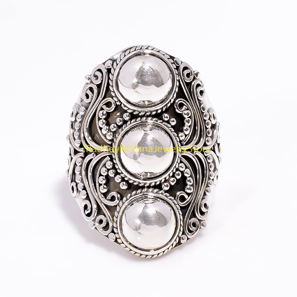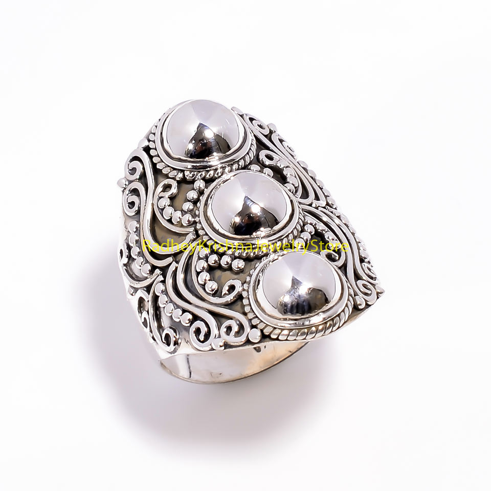แหวนเงินแท้ 925 ทำมือ ดีไซน์ทรงโดมสามชั้น ประดับลายฉลุแบบออกซิไดซ์