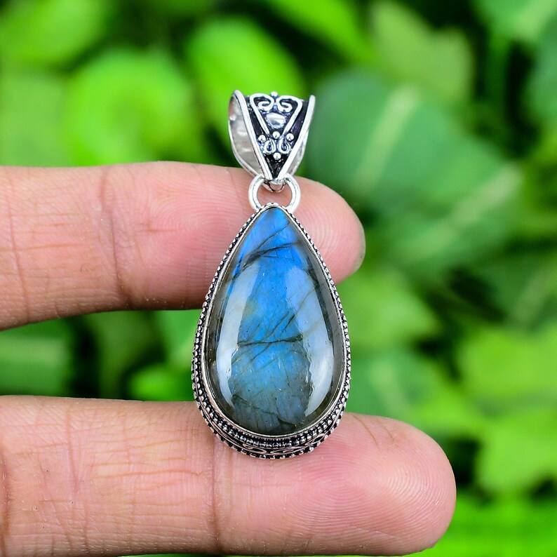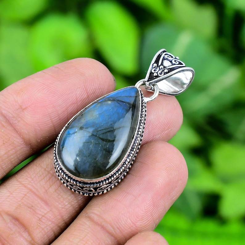 สร้อยคอจี้เงินแท้ 925 ทำมือ สไตล์วินเทจ ประดับด้วยลาบราโดไรต์ ชุบทอง พร้อมกรอบแบบ Bezel Setting - ของขวัญหมั้นสำหรับทุกเพศ