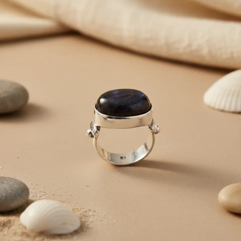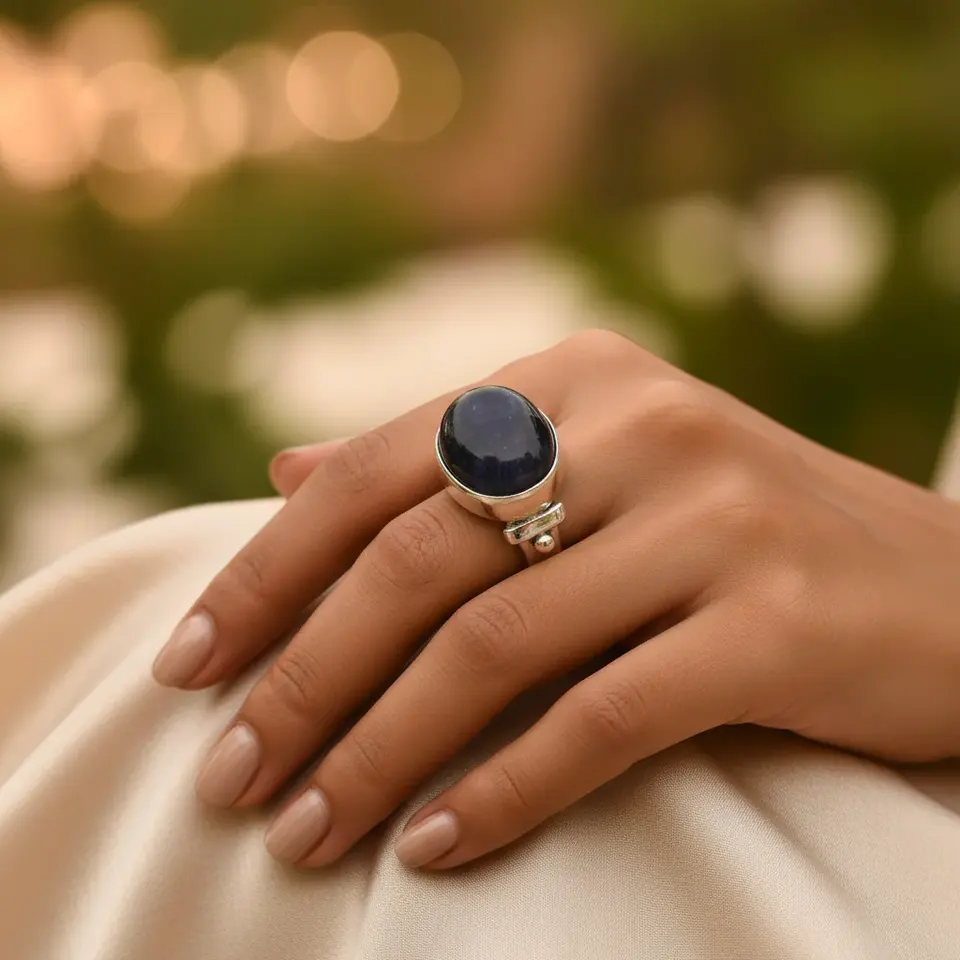 Handmade 925 Sterling Silver Women's Ring with Natural Blue Gemstone Oval Cut Platinum Jewelry Fine Handcrafted Jewelry