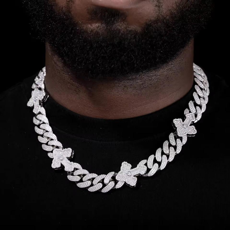 จี้ห้อยคอแบบคิวบันทำมือจากเงินแท้ 925 ชุบทองคำขาว 14K สำหรับผู้ชาย ประดับเพชรโมอิสซาไนต์ VVS1 คุณภาพเยี่ยม