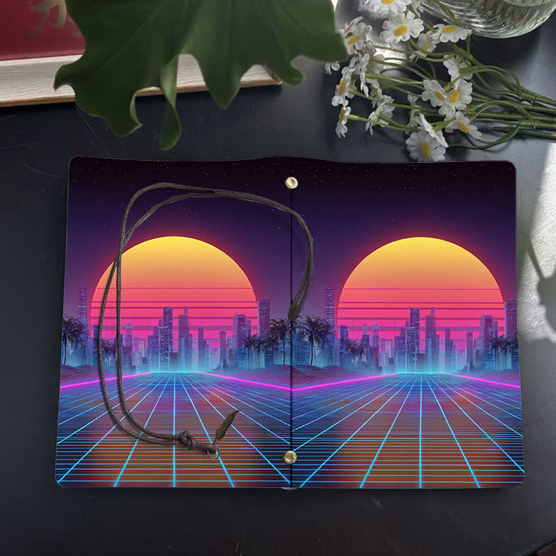 สมุดโน๊ต A6ทำด้วยมือสไตล์วินเทจพร้อมฝาปิด80แผ่นของขวัญวันเกิดที่สมบูรณ์แบบสำหรับพี่สาวขั้นบันไดด้วยต้นปาล์มชมพระอาทิตย์ตก